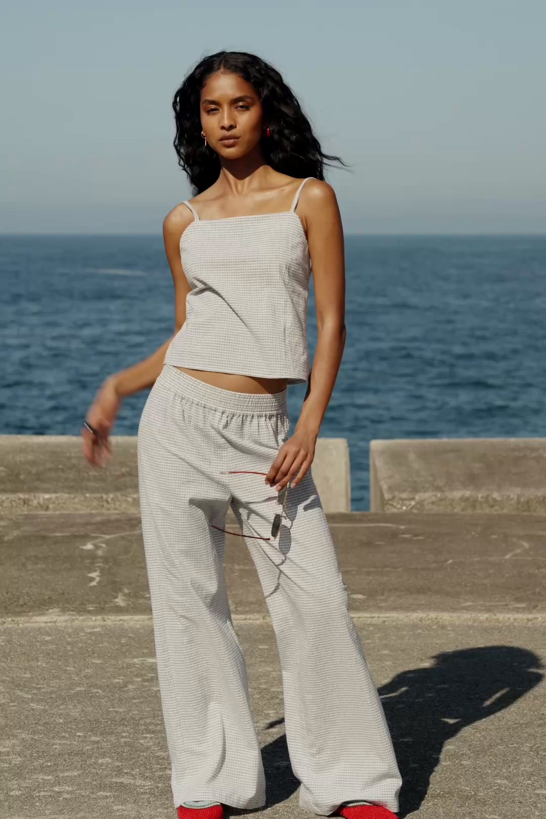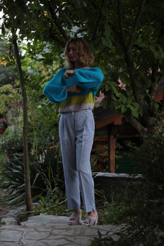 gingham check trousers