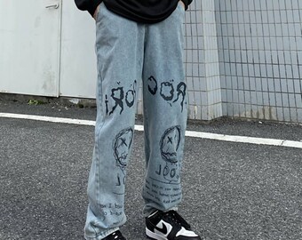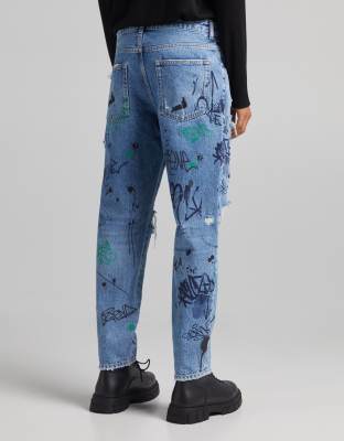 graffiti print jeans