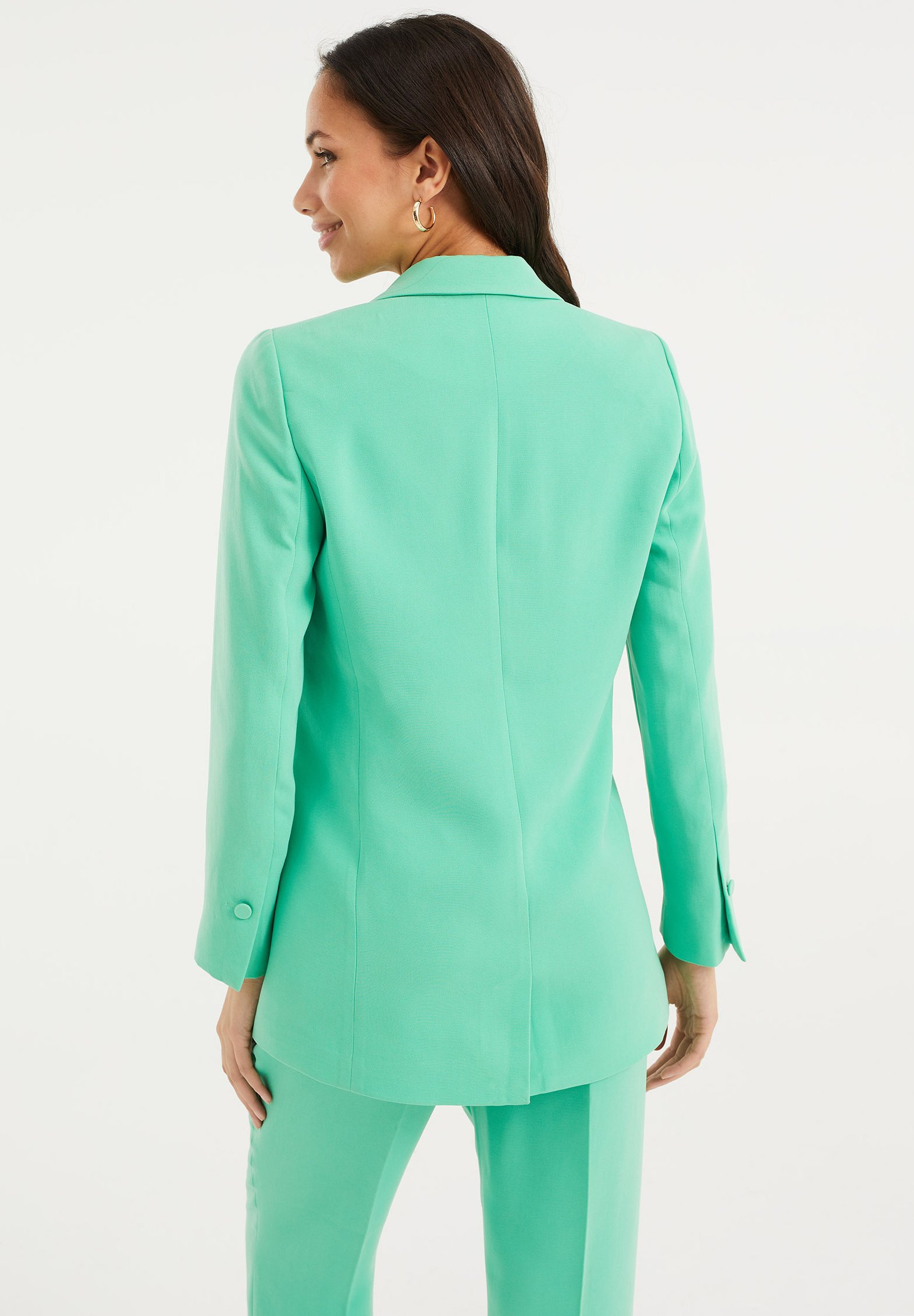green blazer blue pants