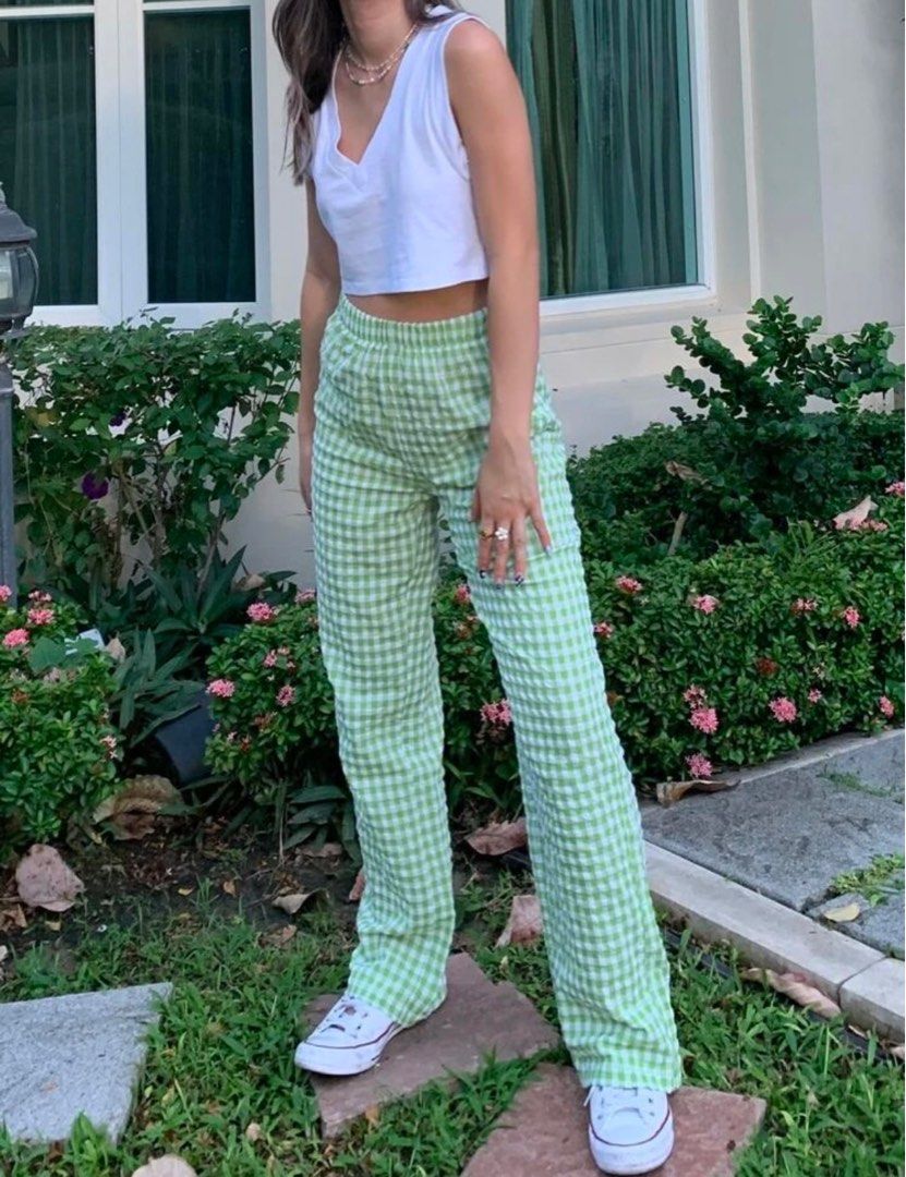 green checkerboard pants