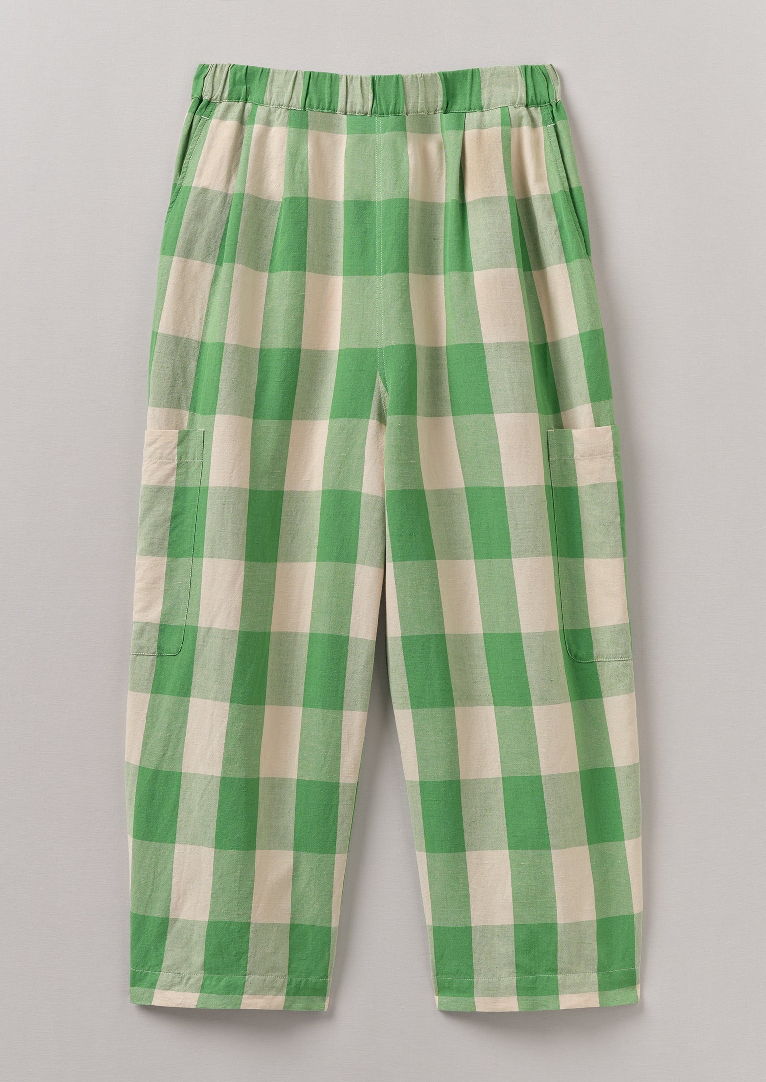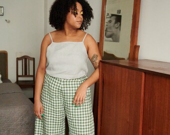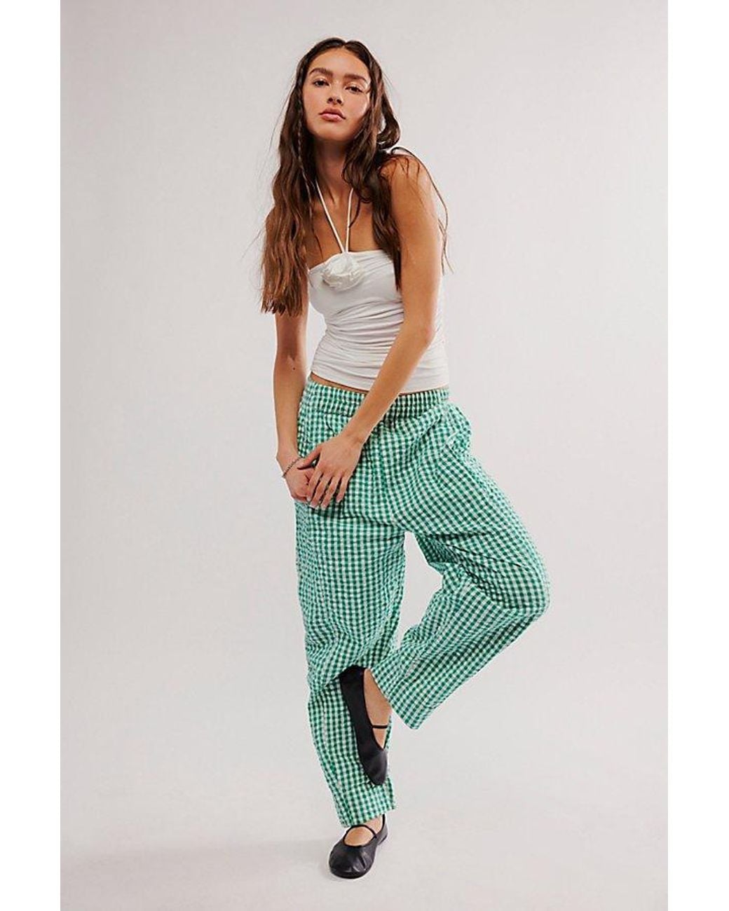 green gingham pants