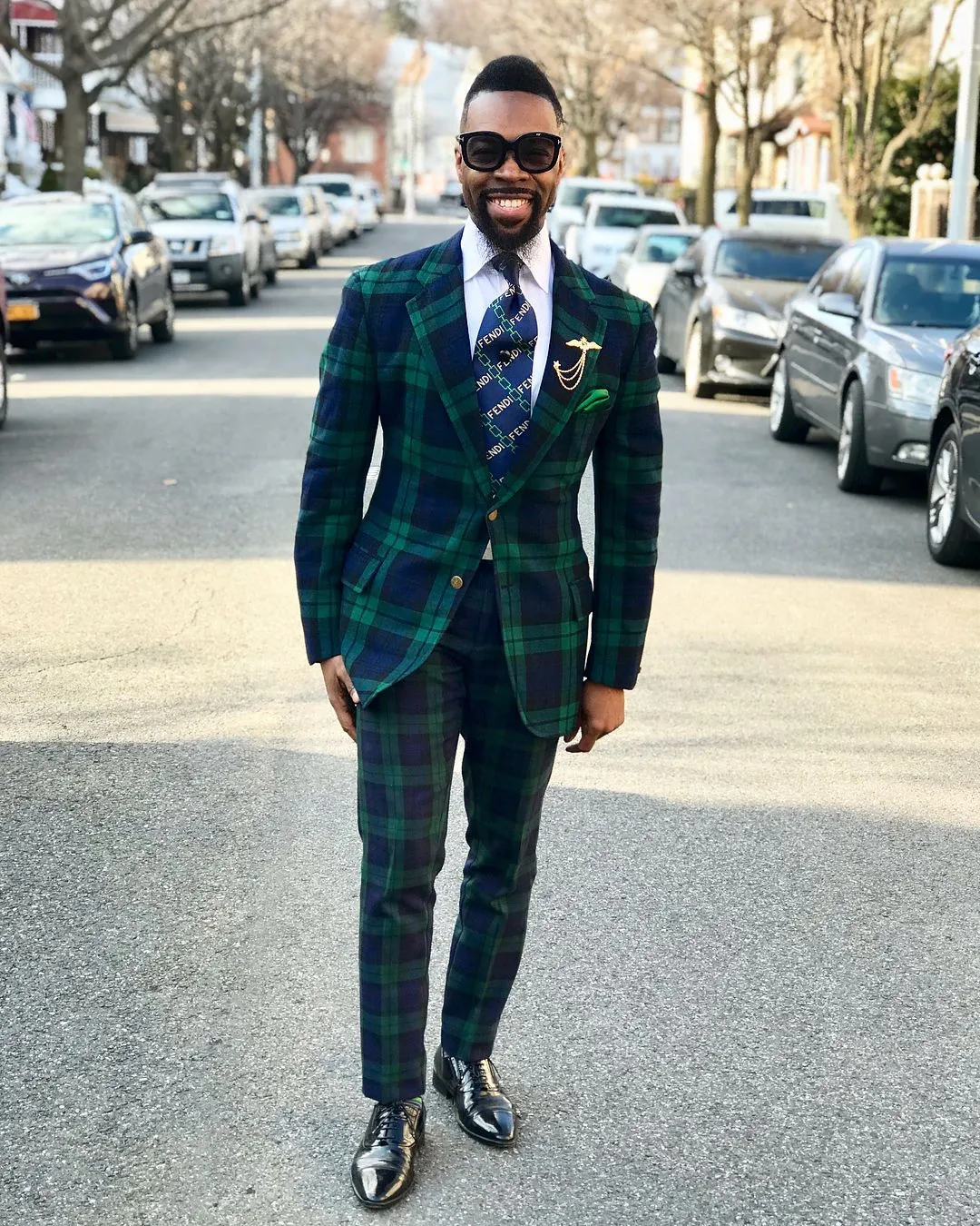 green jacket blue pants
