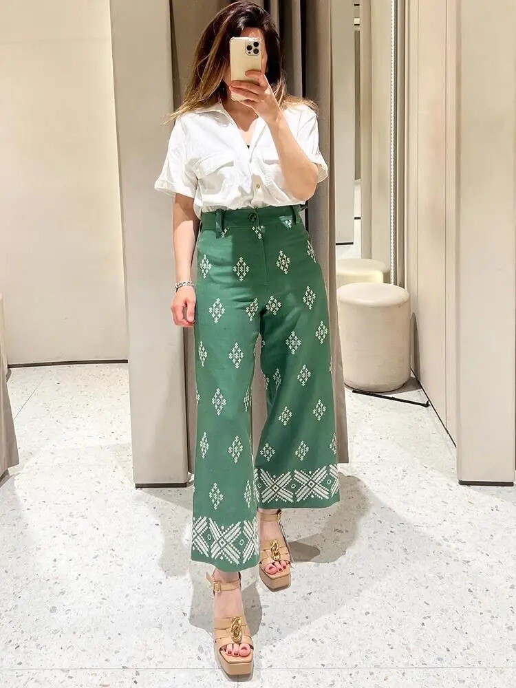 green pattern pants