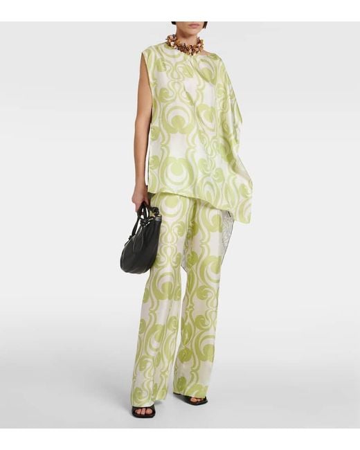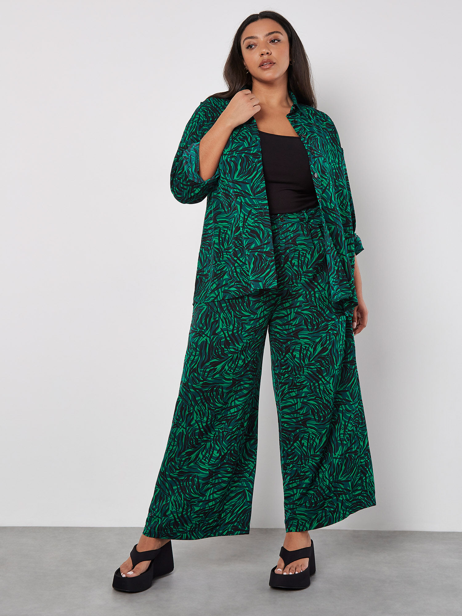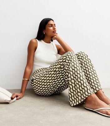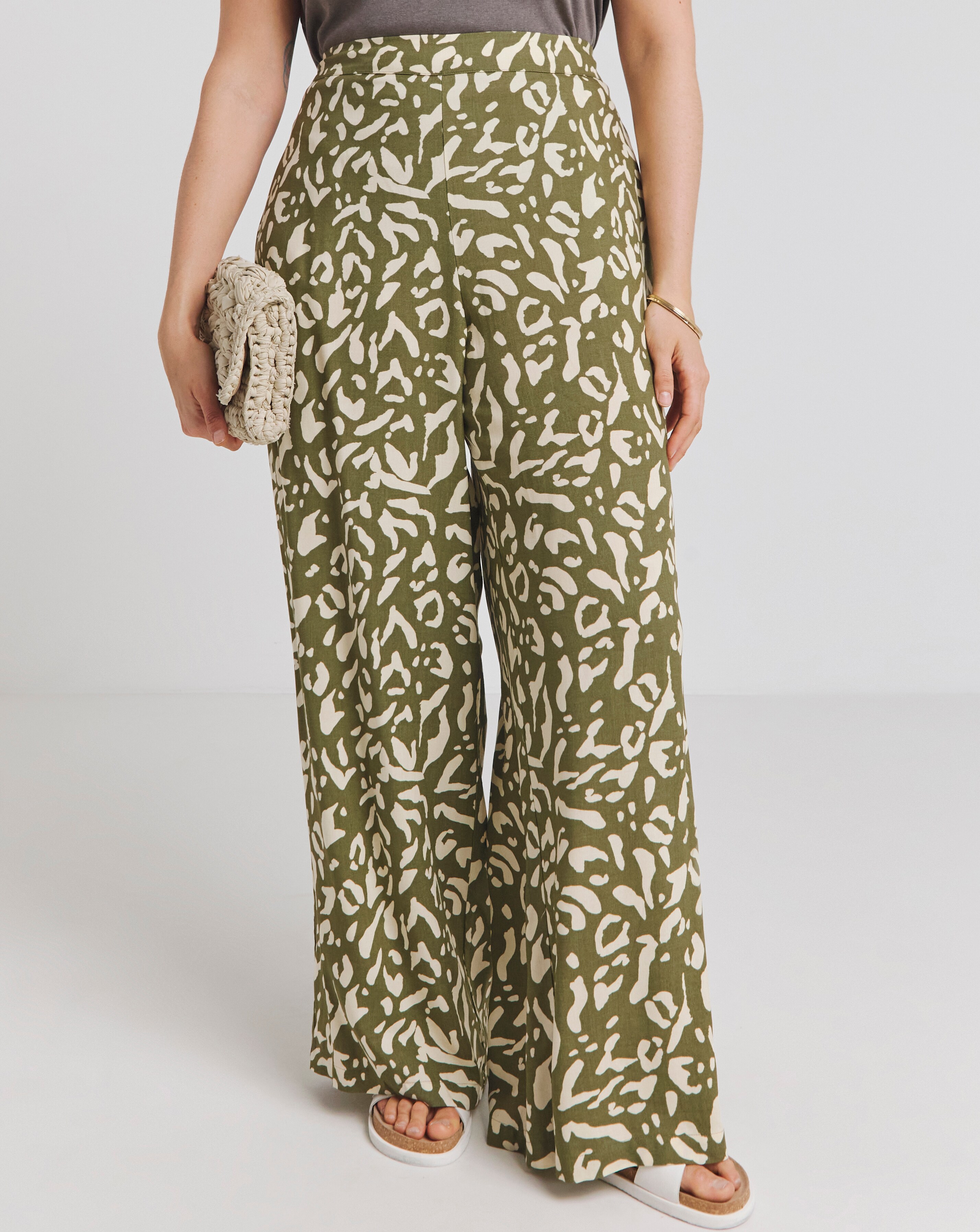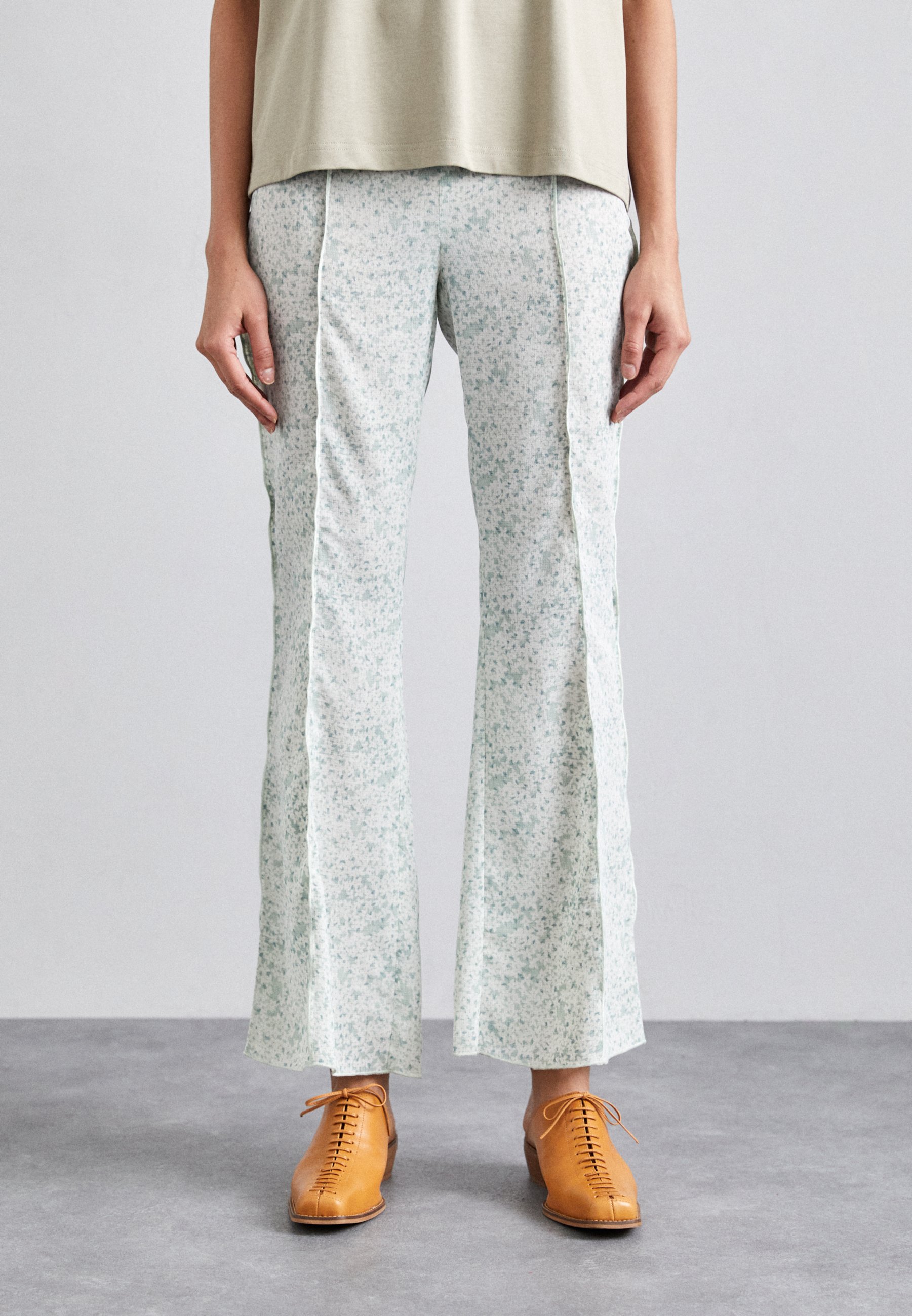 green printed pants