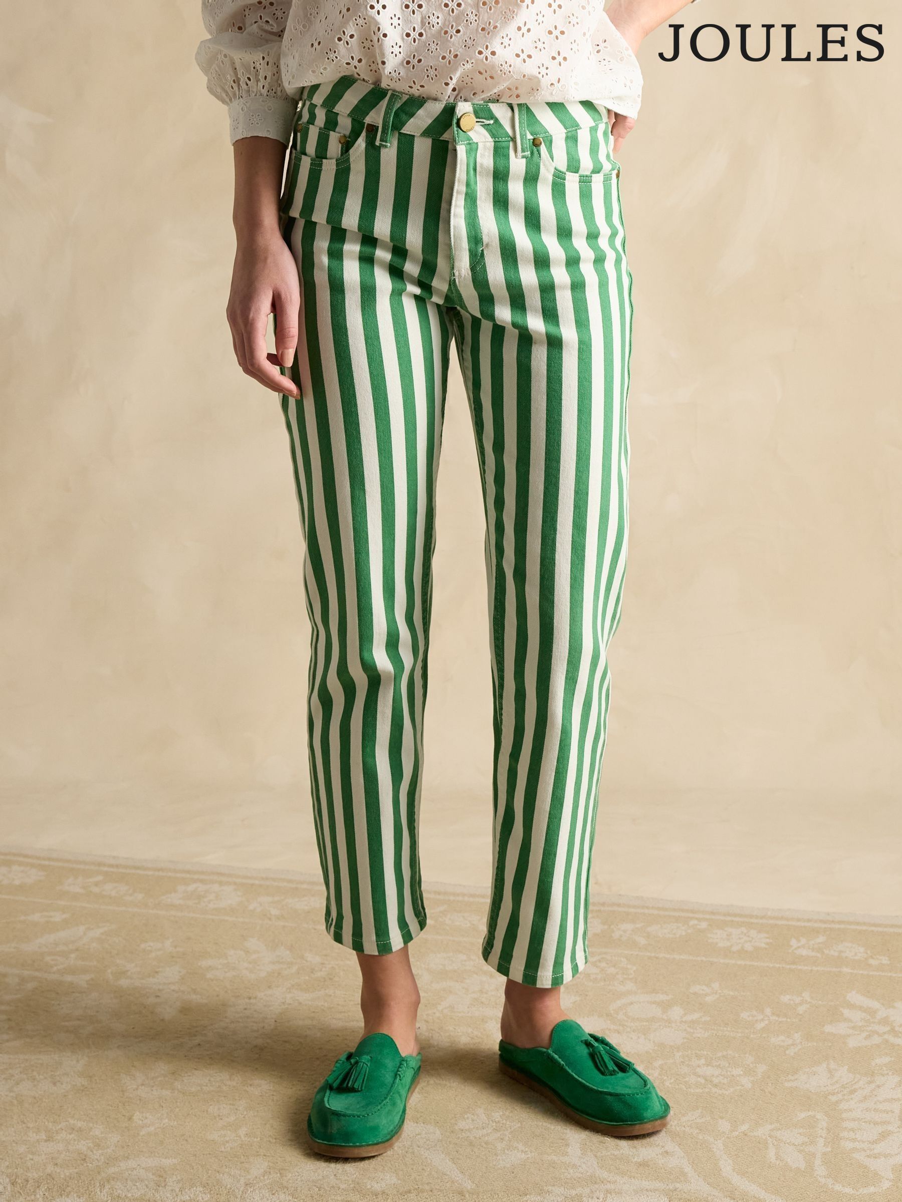 green striped jeans
