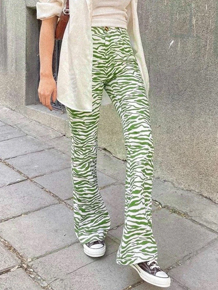 green zebra print jeans