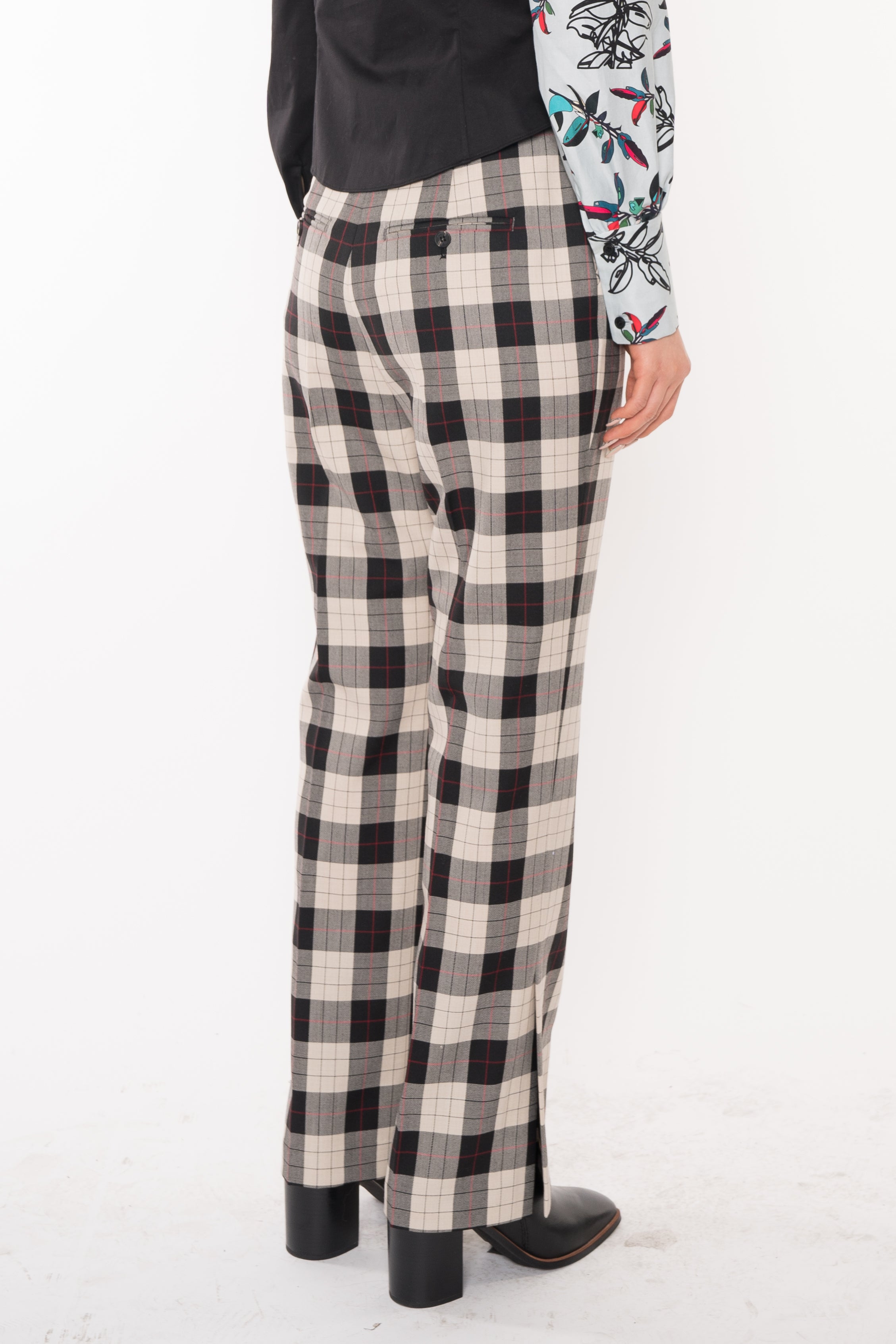 grey and black plaid pants