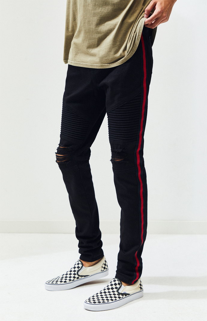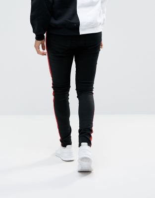 grey jeans with red stripe
