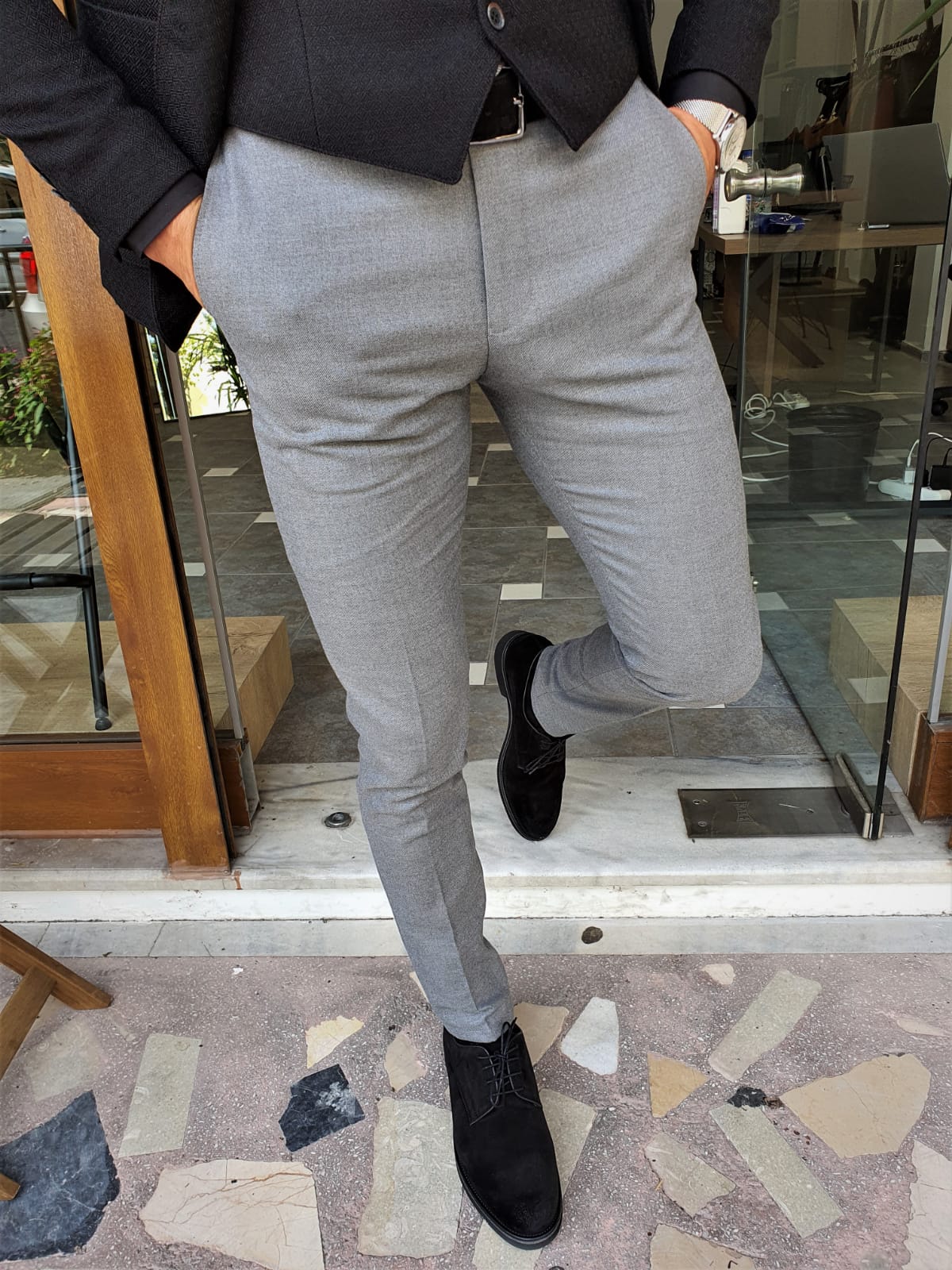 grey pants fit