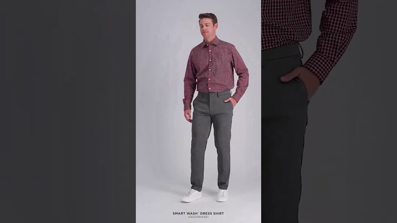 grey shirt red pants