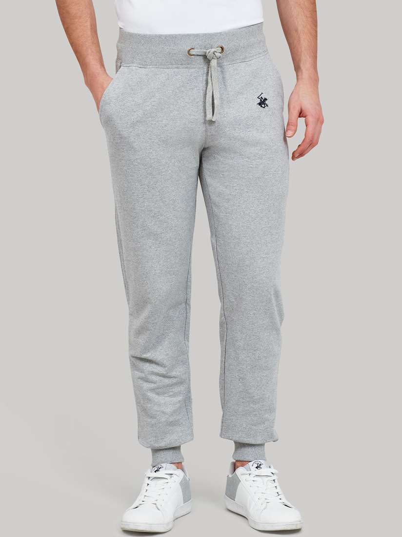 grey stacked joggers