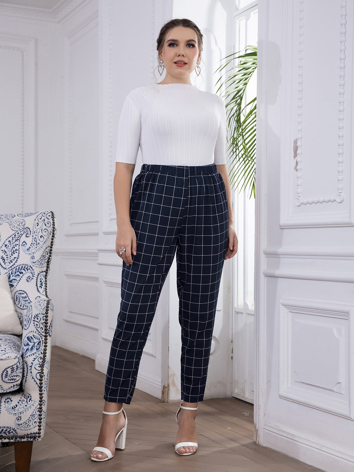 grid pattern pants