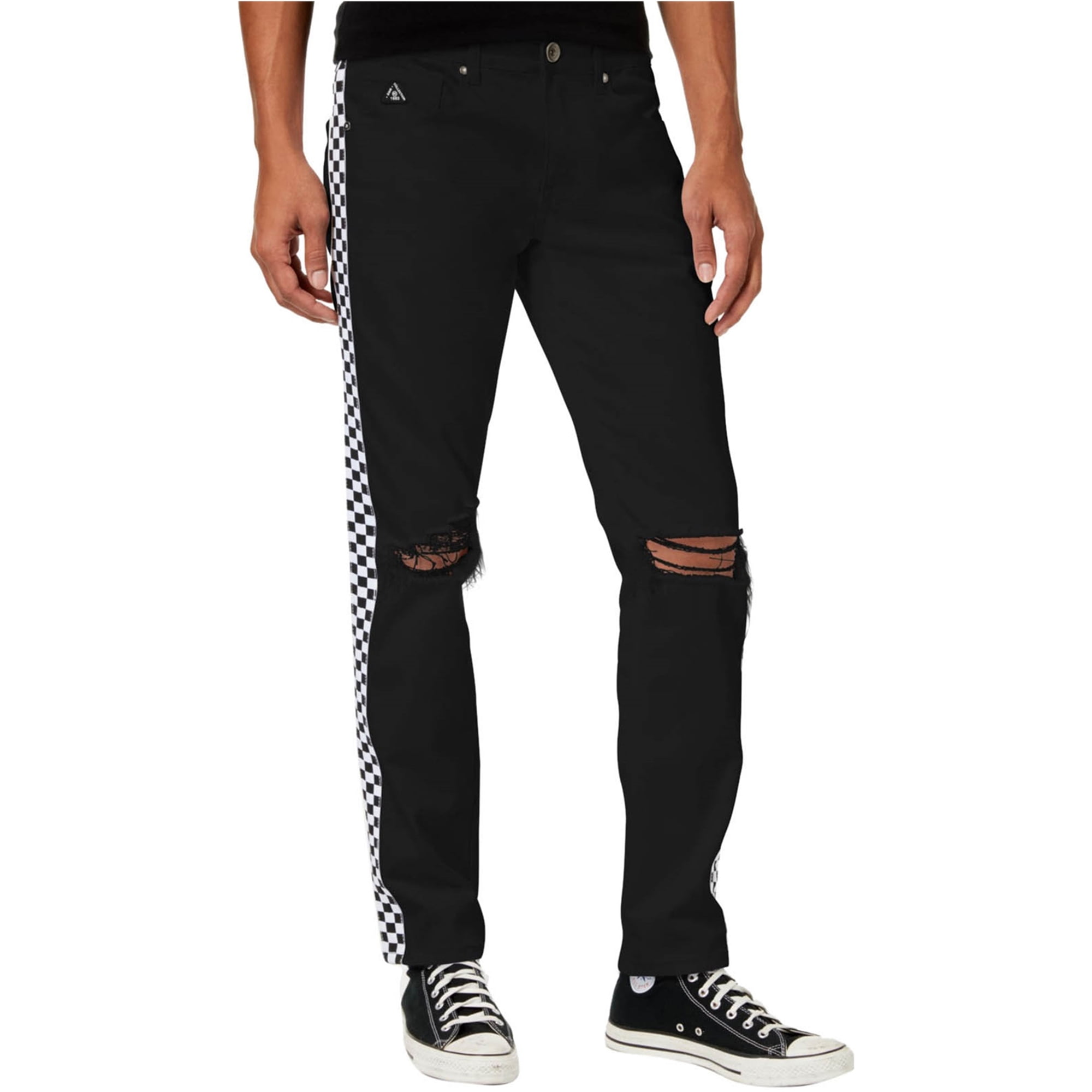 guys checkerboard patch distressed jeans