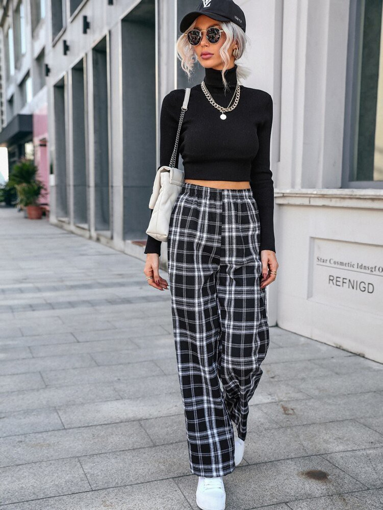 half black half white checkered pants