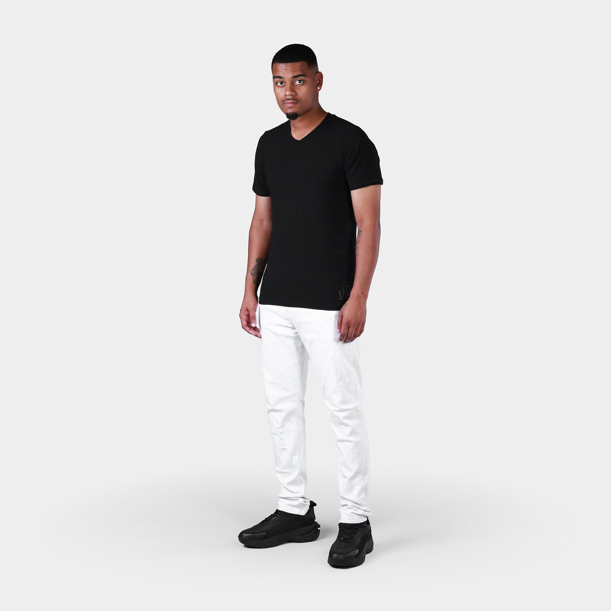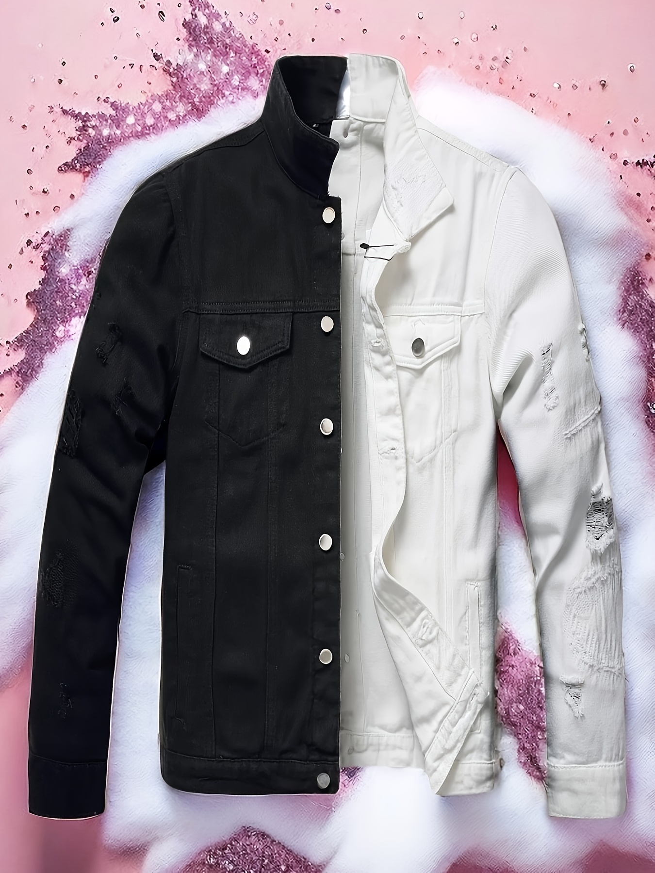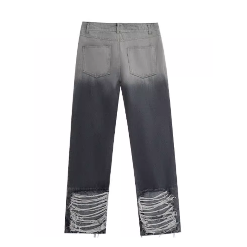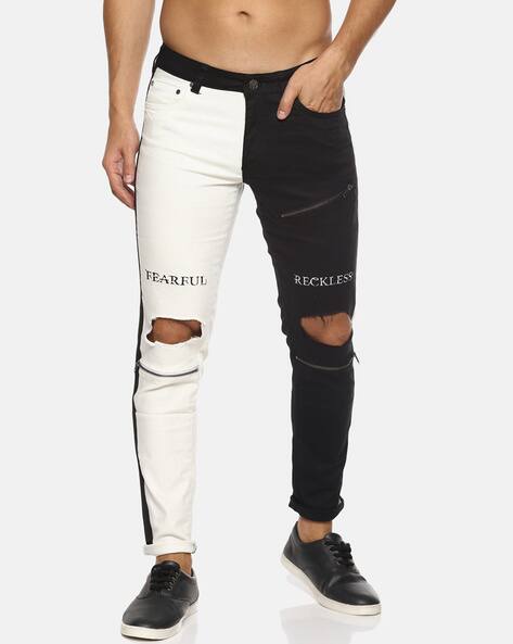 half black half white ripped jeans
