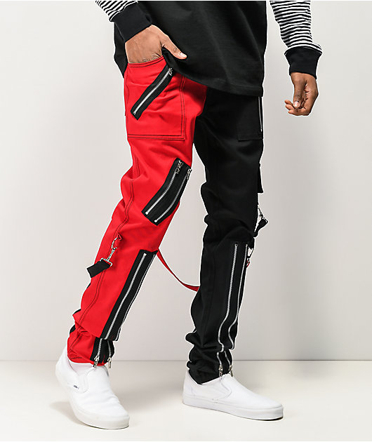 half red half black pants
