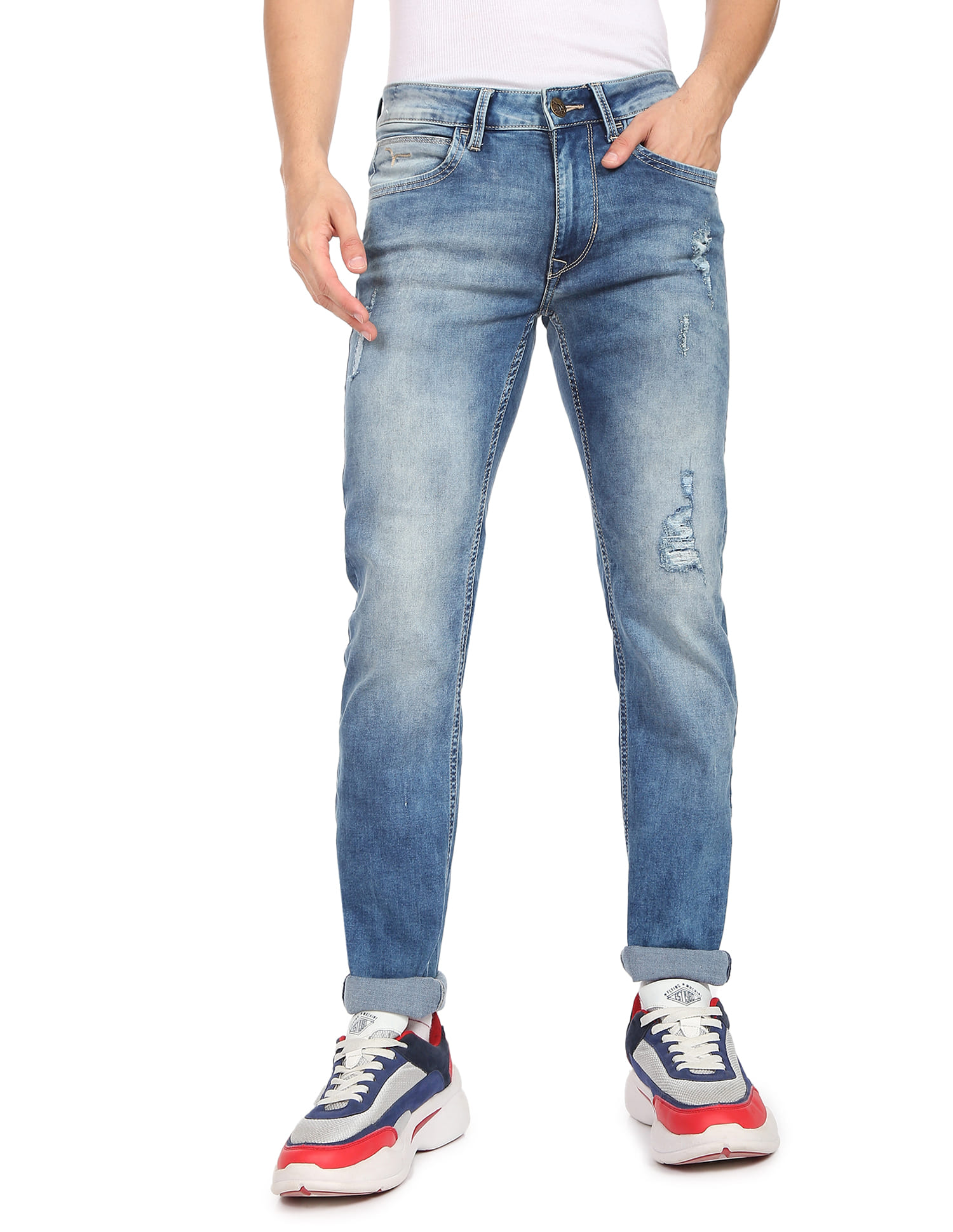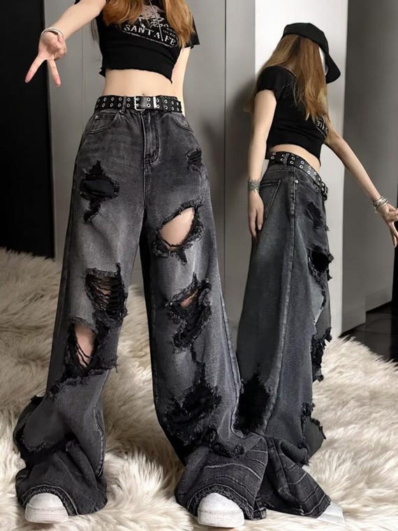 heavily distressed jeans