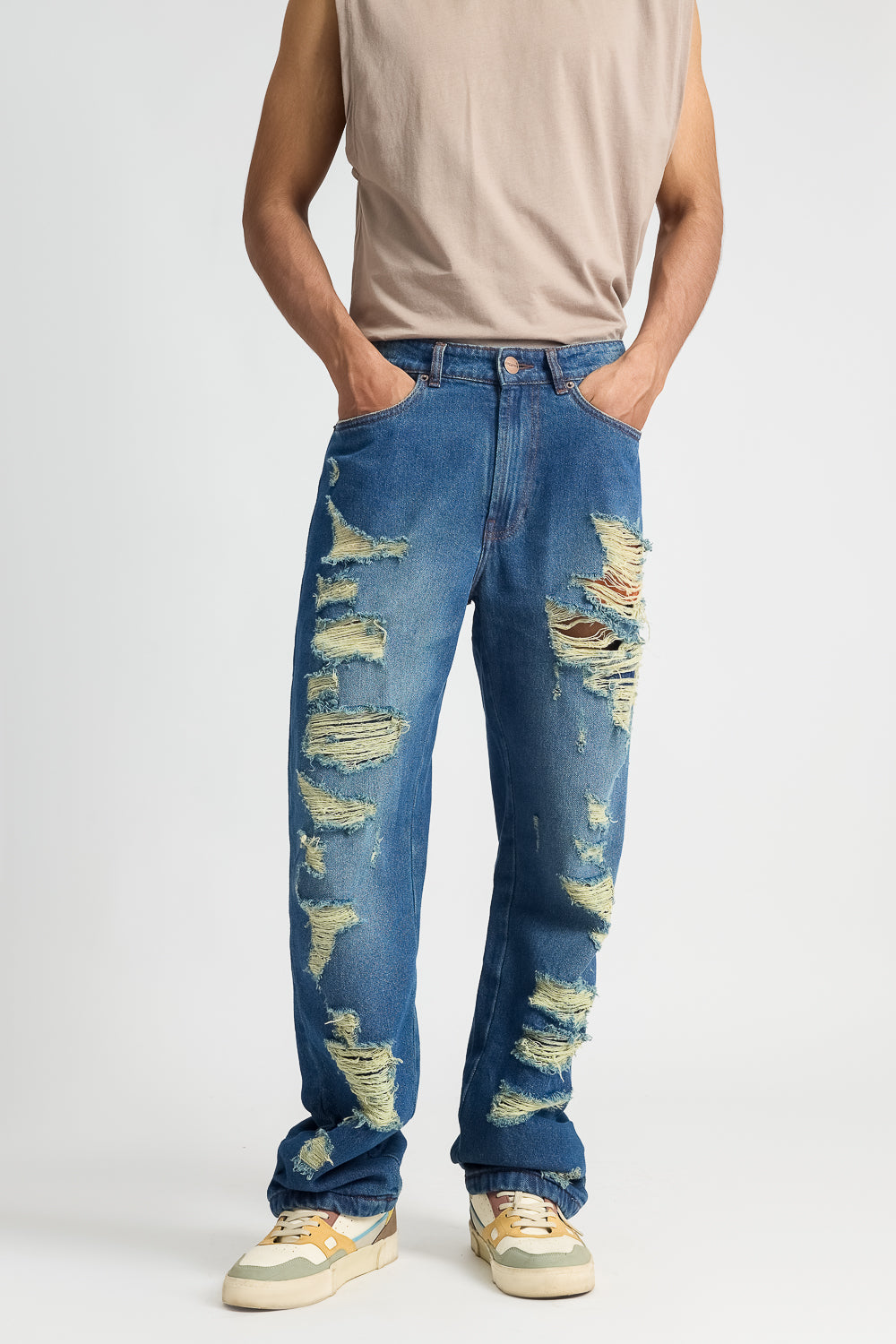 heavy distressed jeans