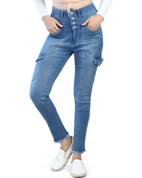 high button jeans