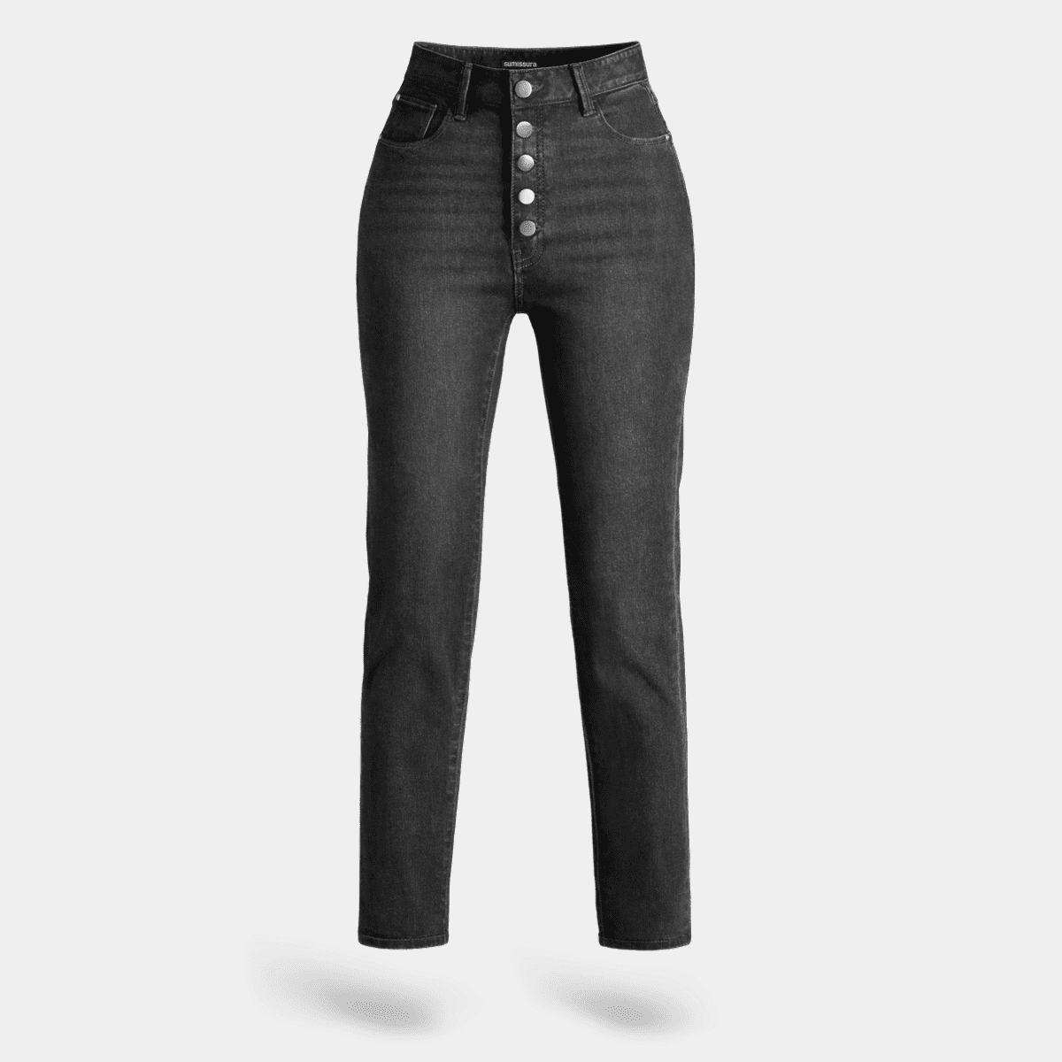 high rise button fly black jeans