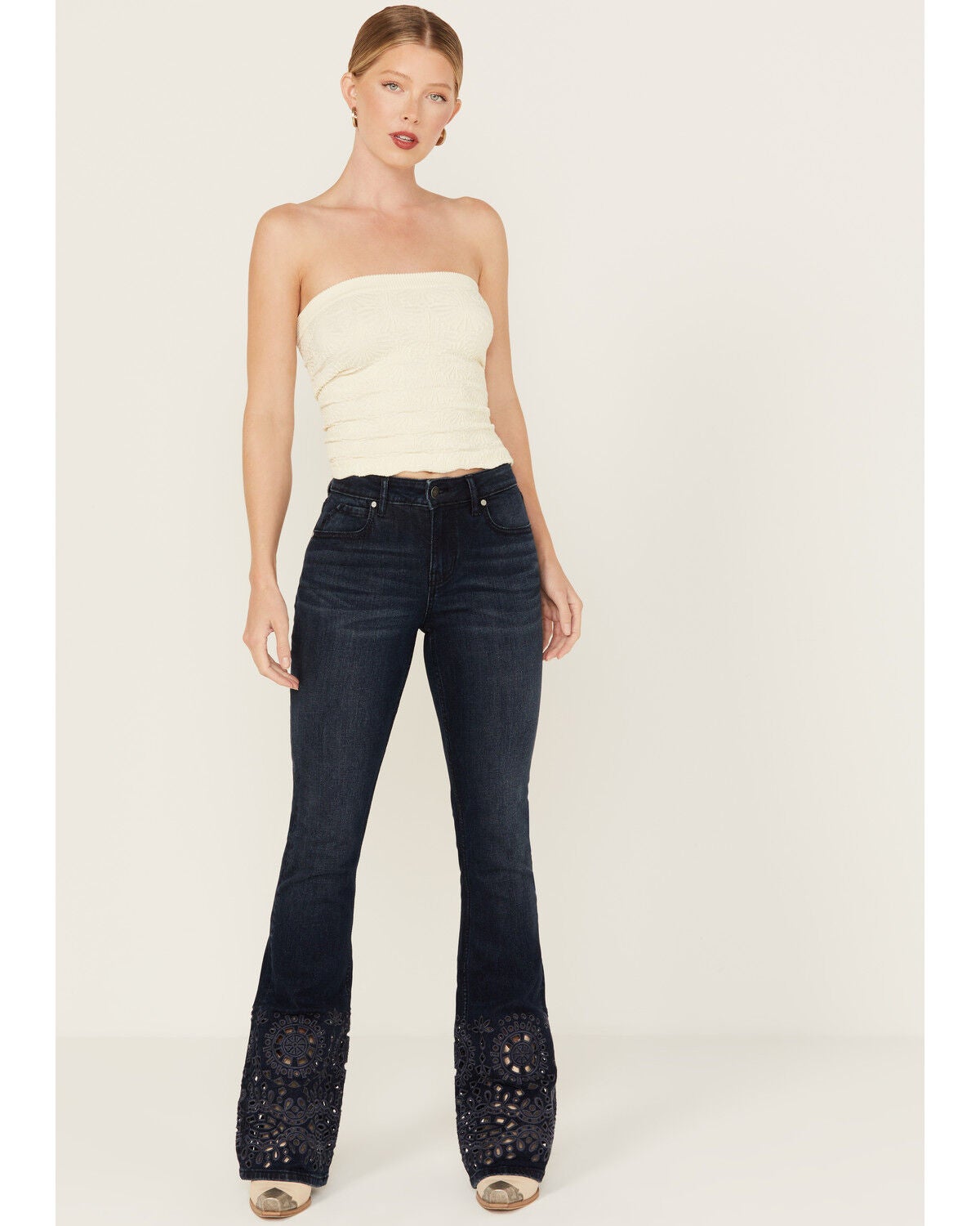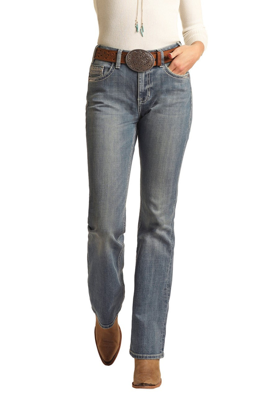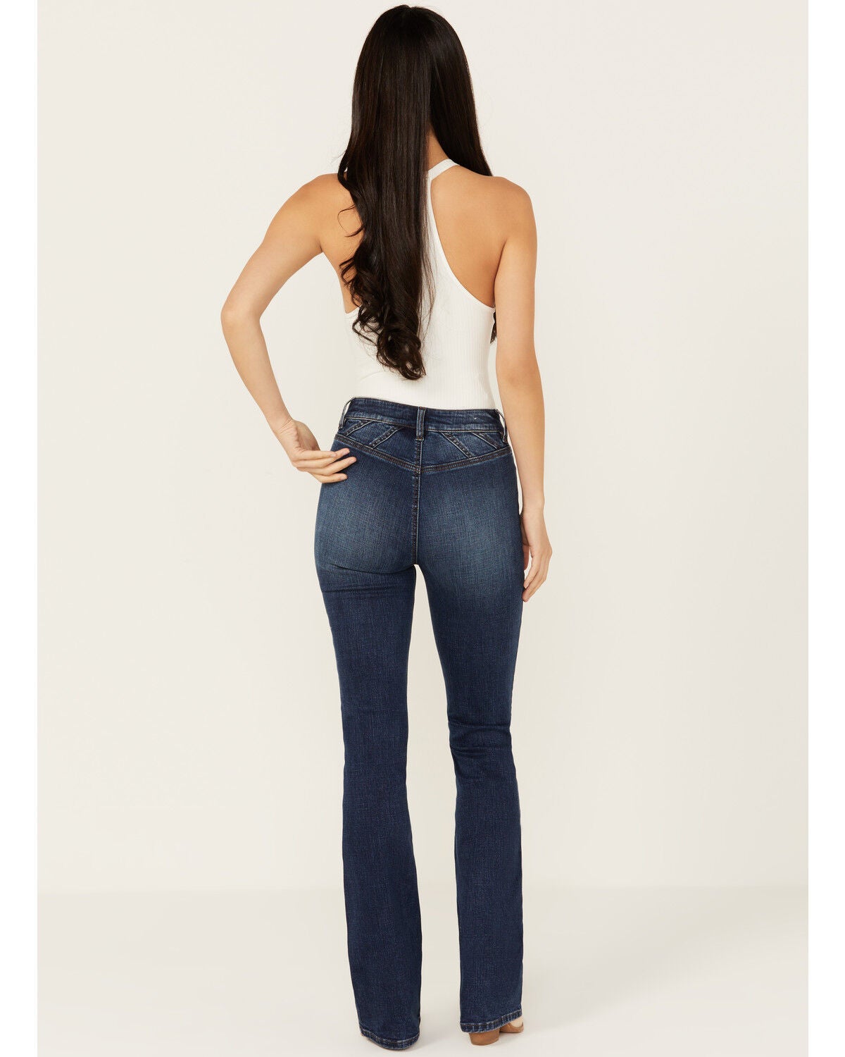 high rise stretch bootcut jeans
