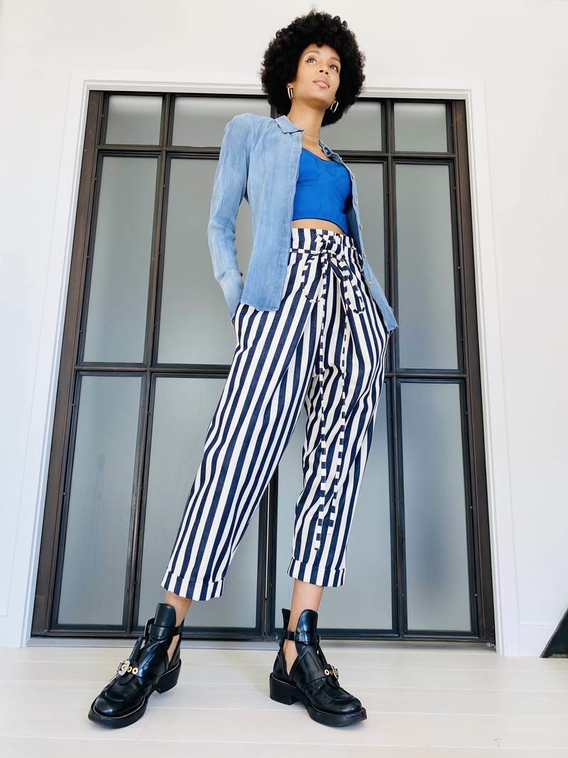 high rise striped pants