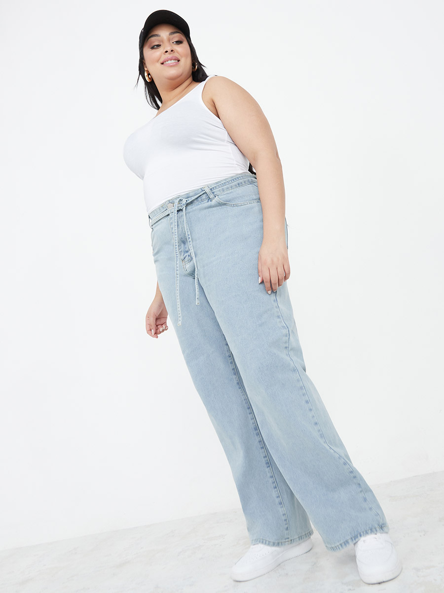 high waisted belted jeans