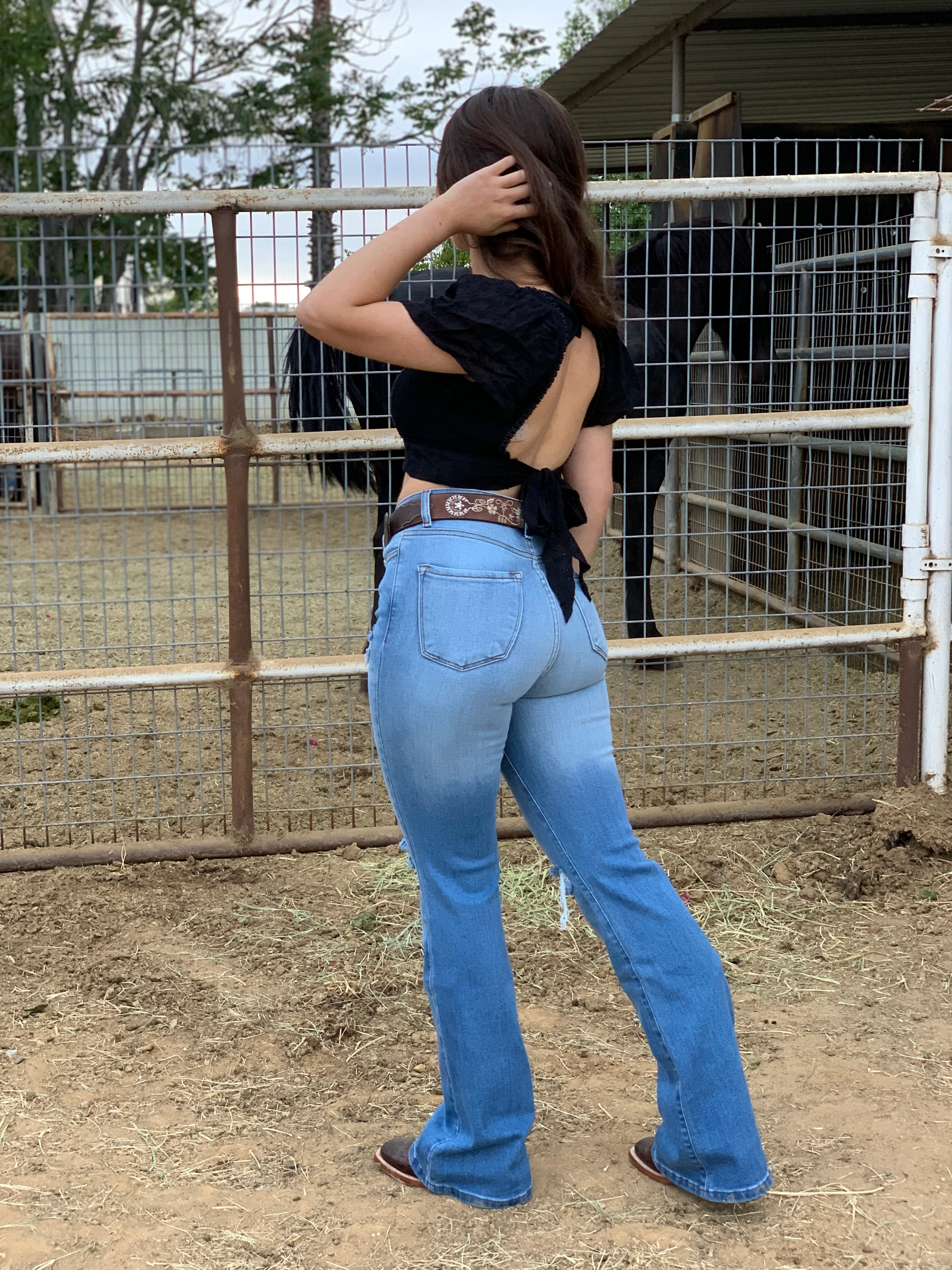 high waisted distressed bootcut jeans
