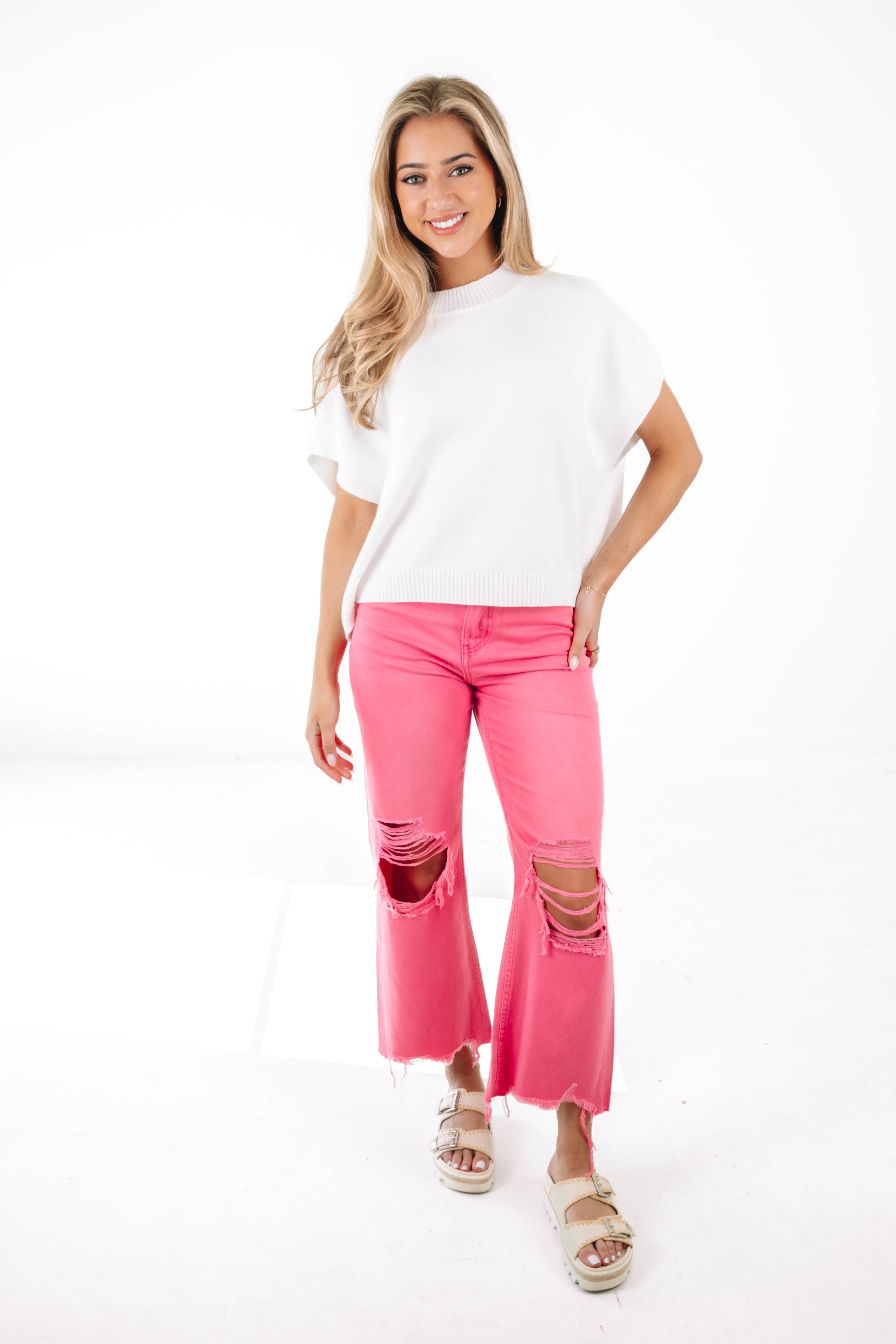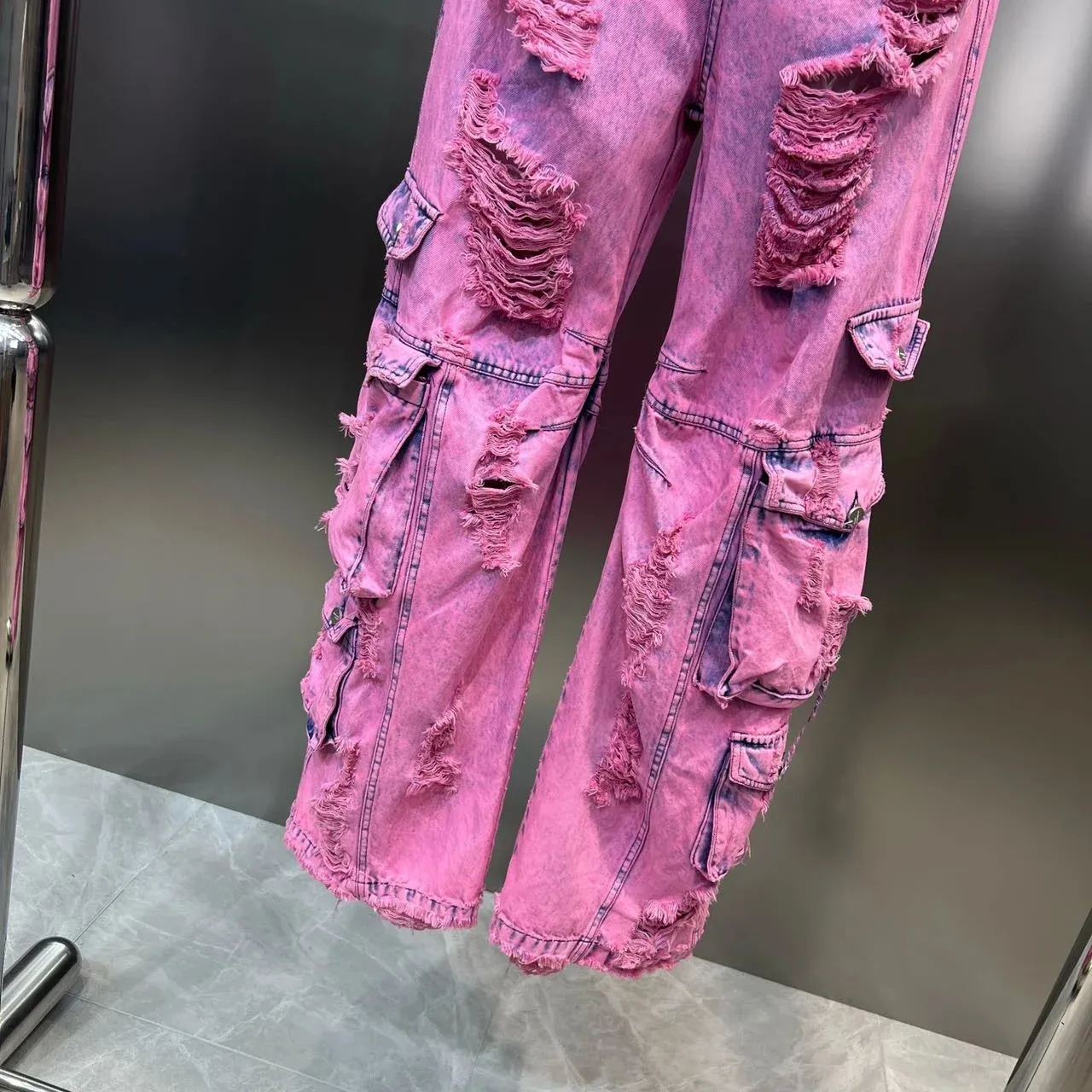 hot pink distressed jeans