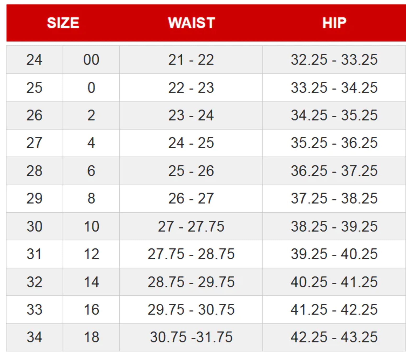 jean size 23 conversion