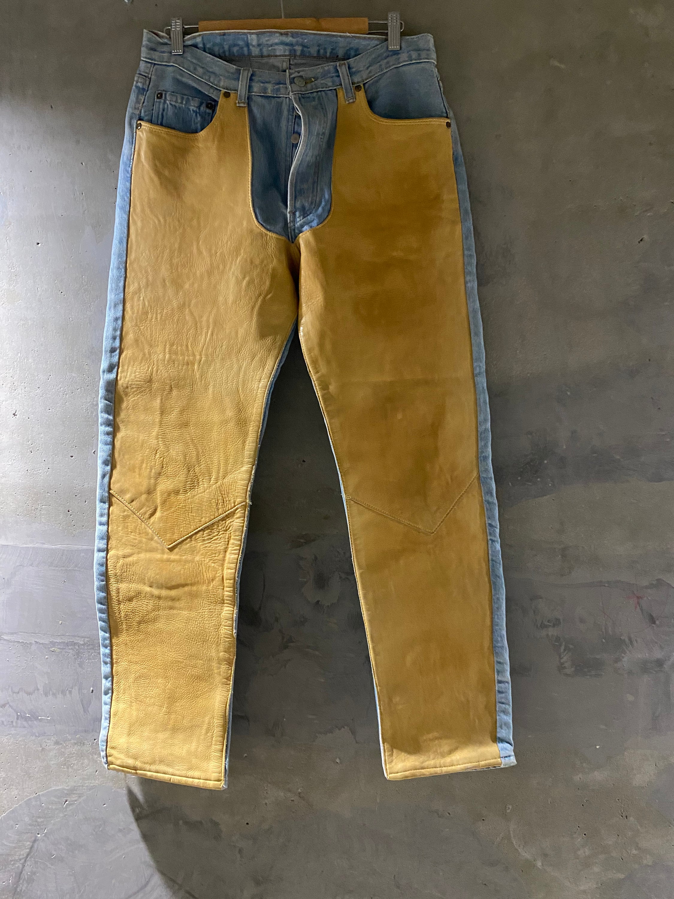 jeans with leather front