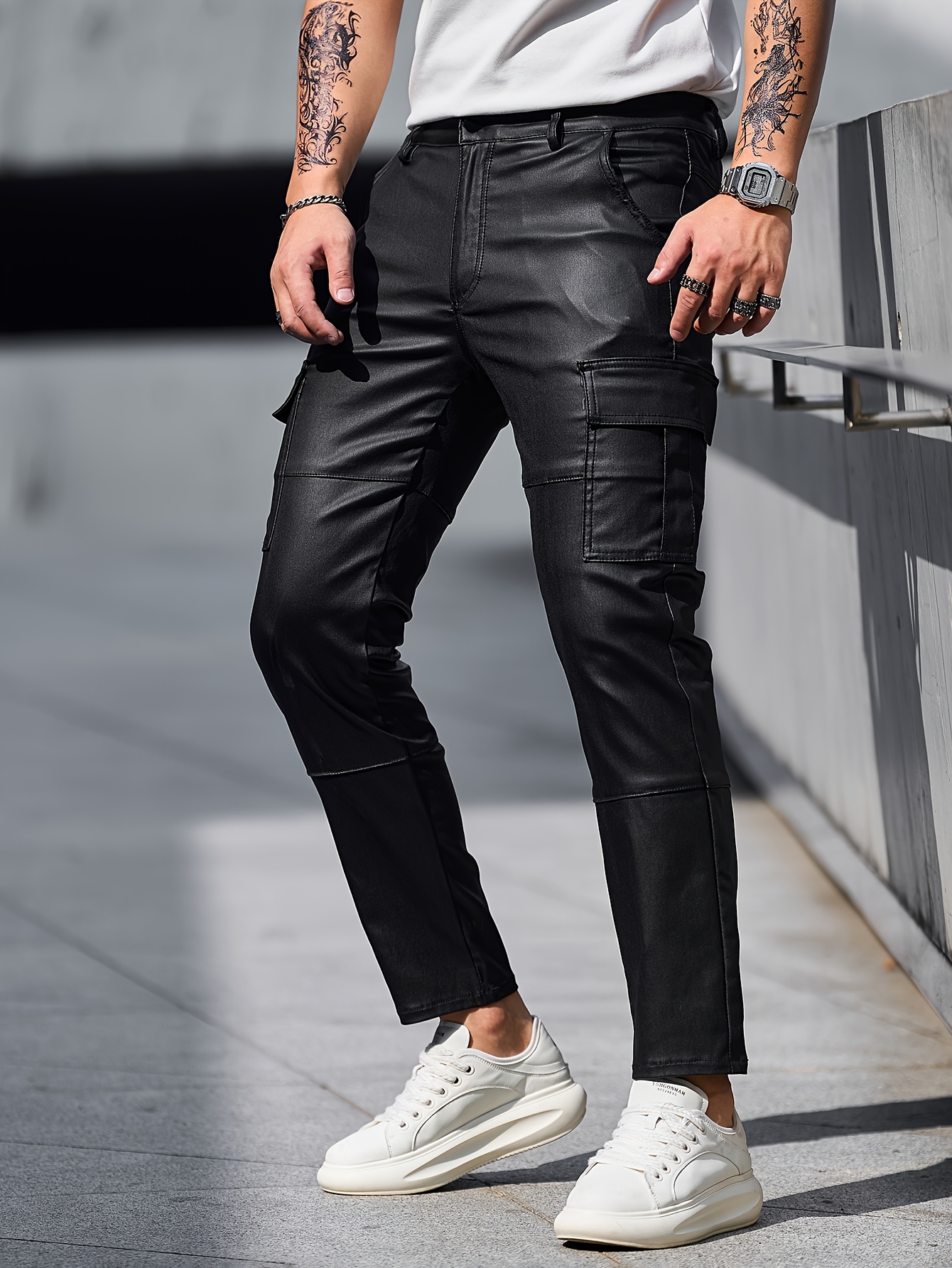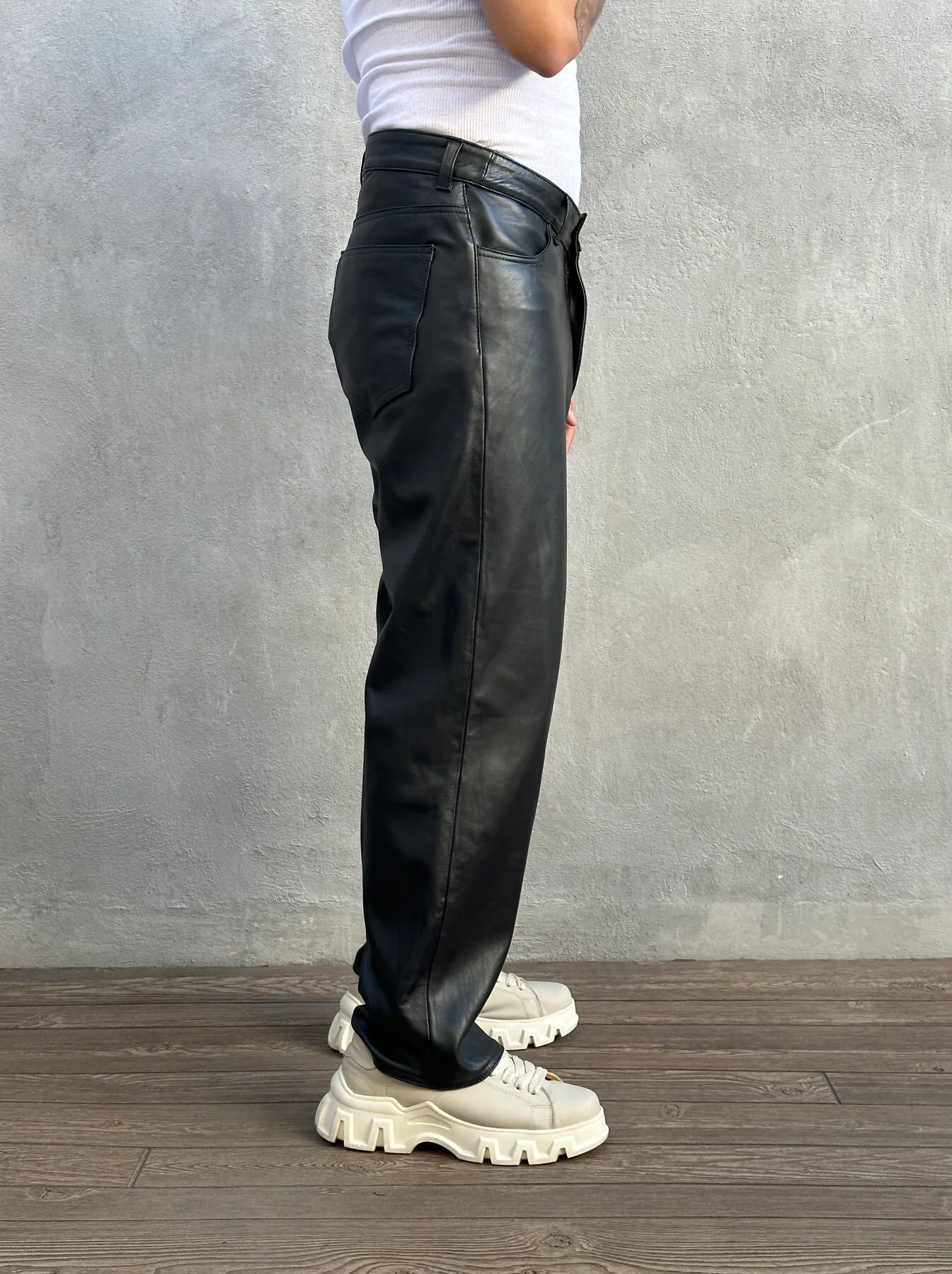 leather denim pants mens