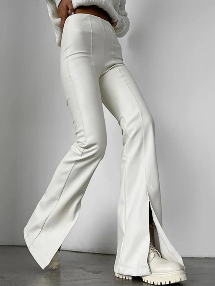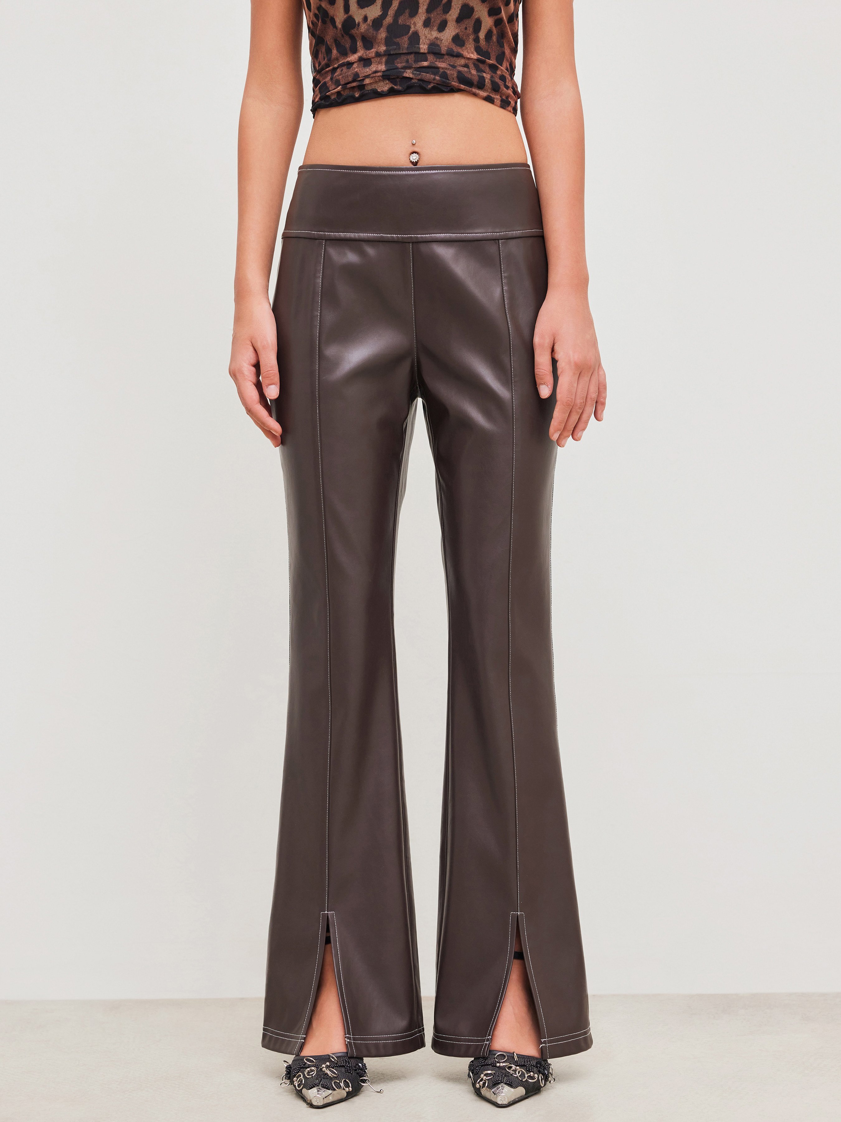 leather flared split trousers