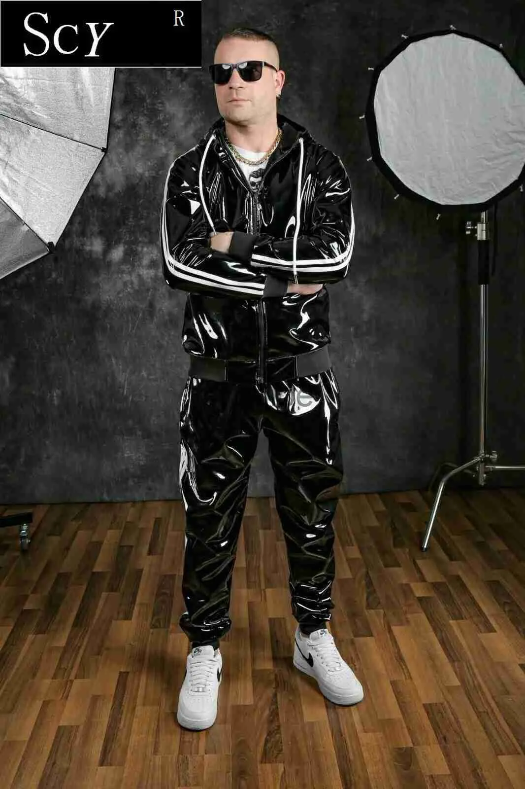 leather jogging suit