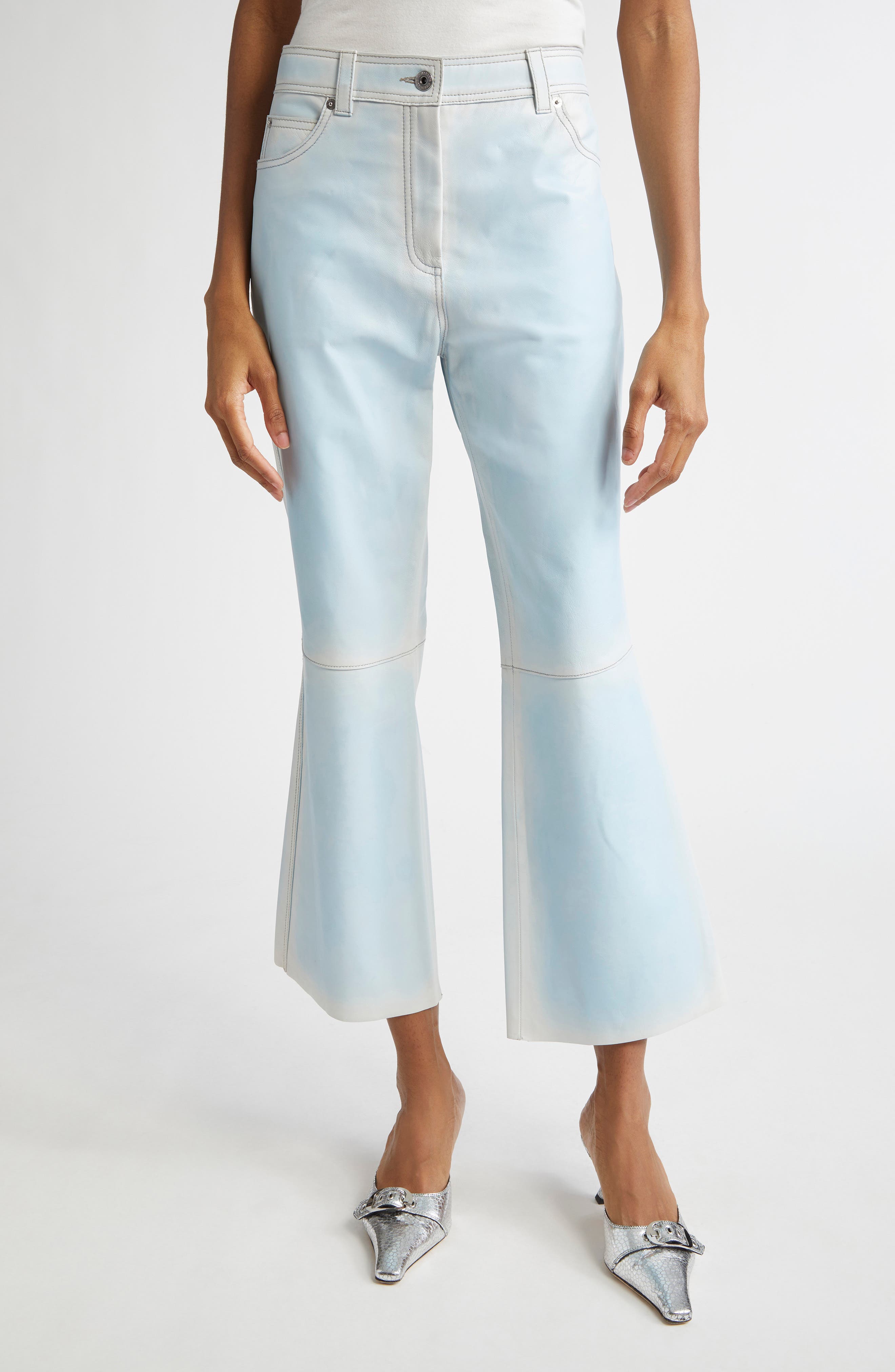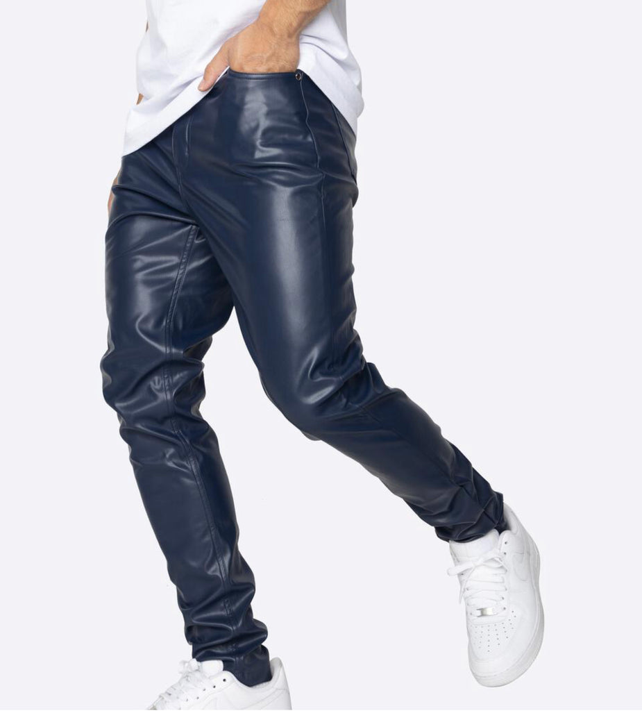 leather pants blue