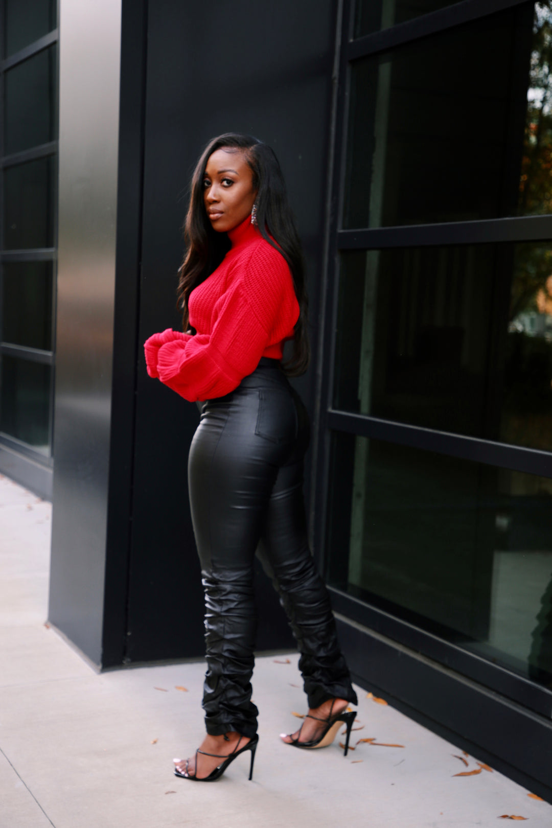 leather pants stacked