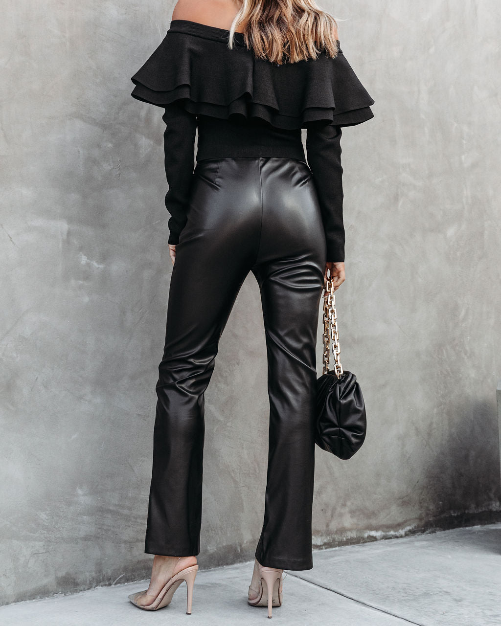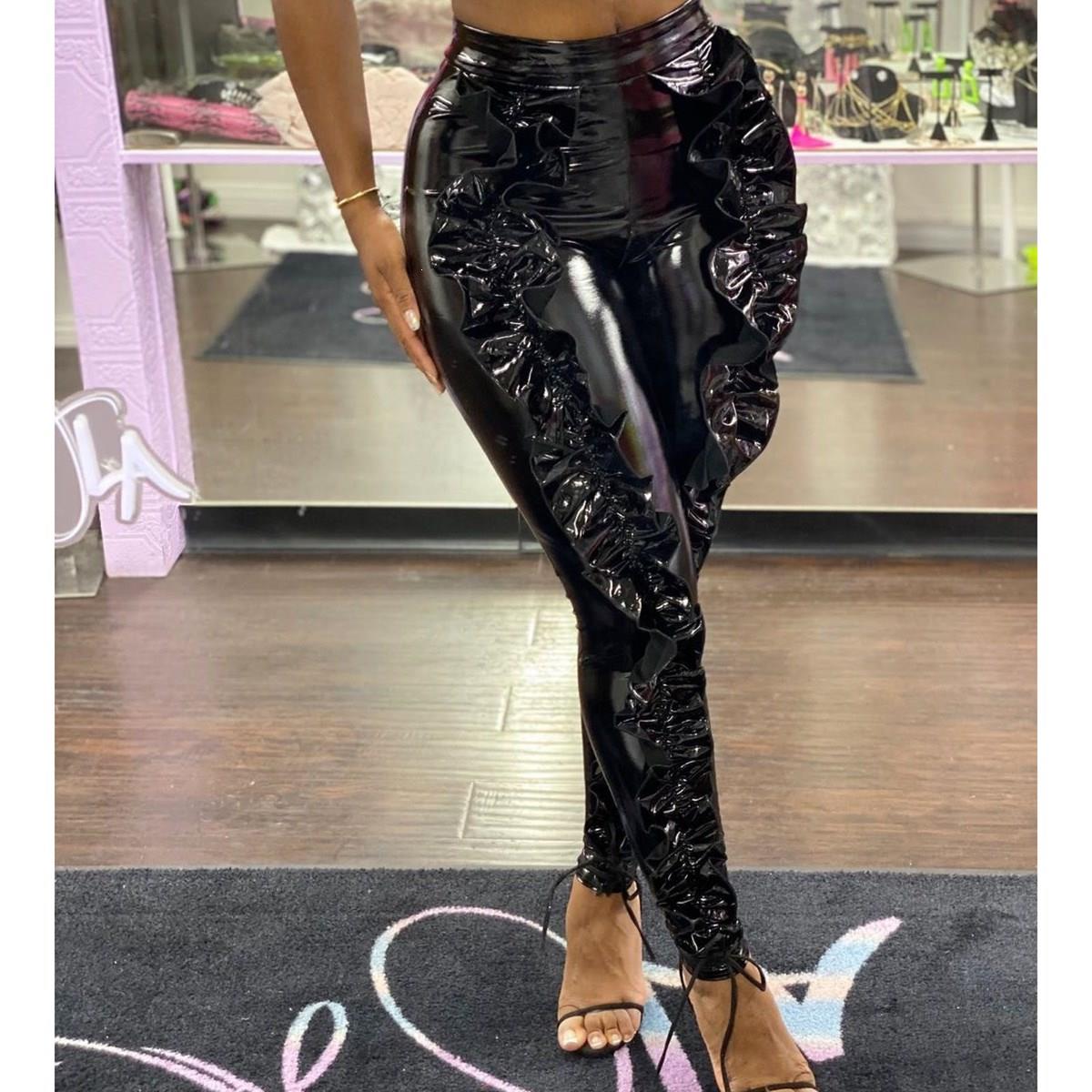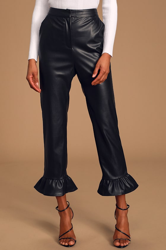 leather ruffle pants