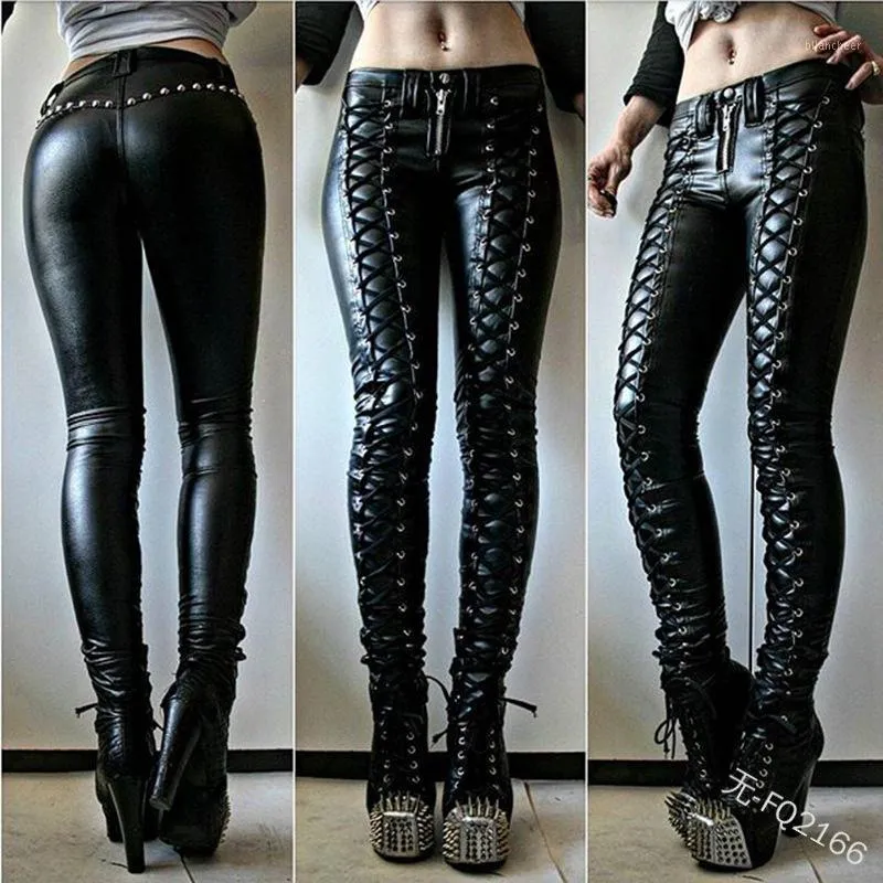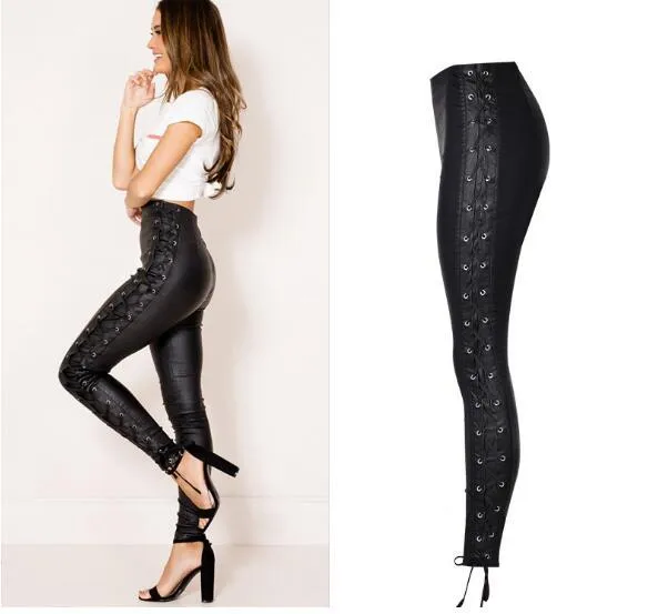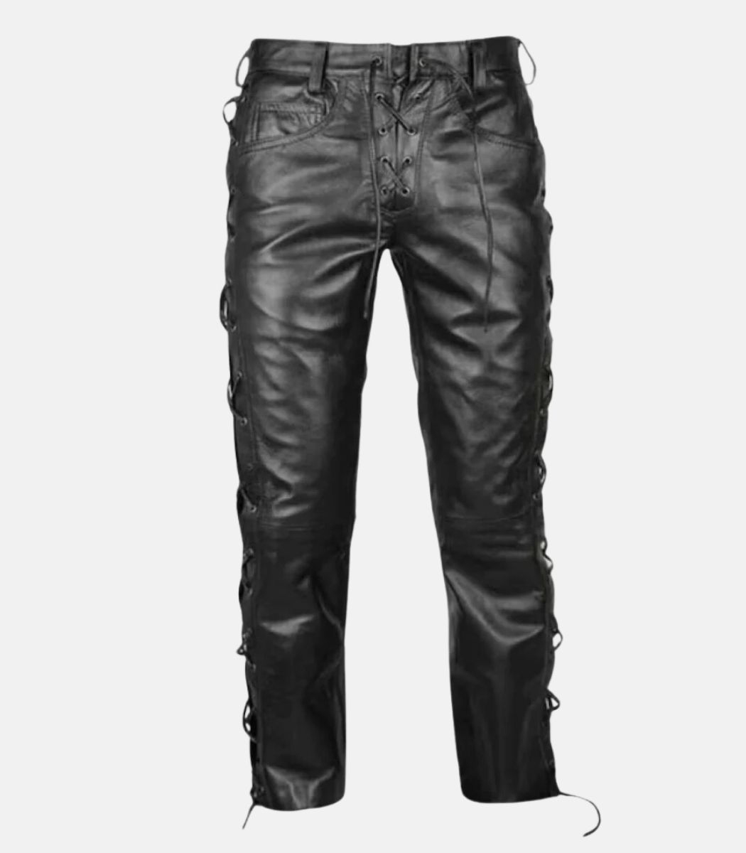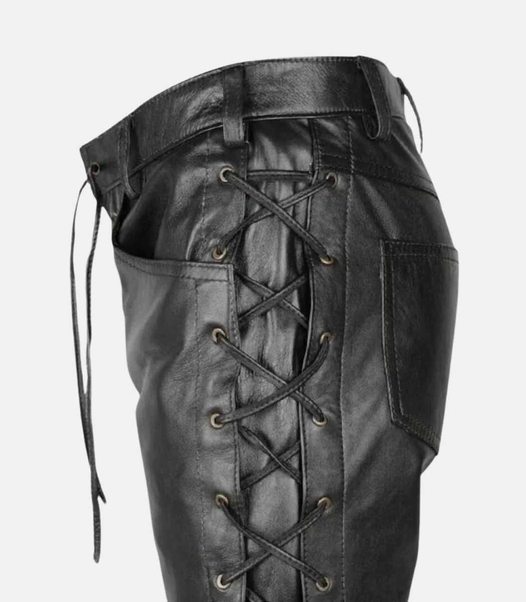 leather side lace up pants