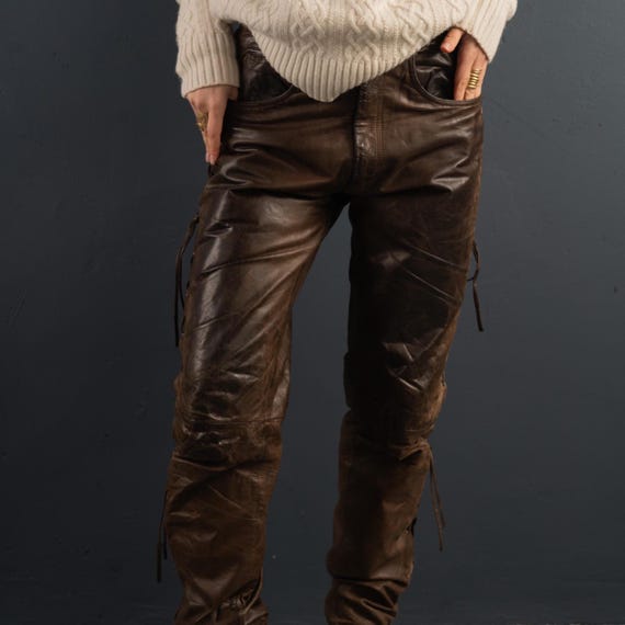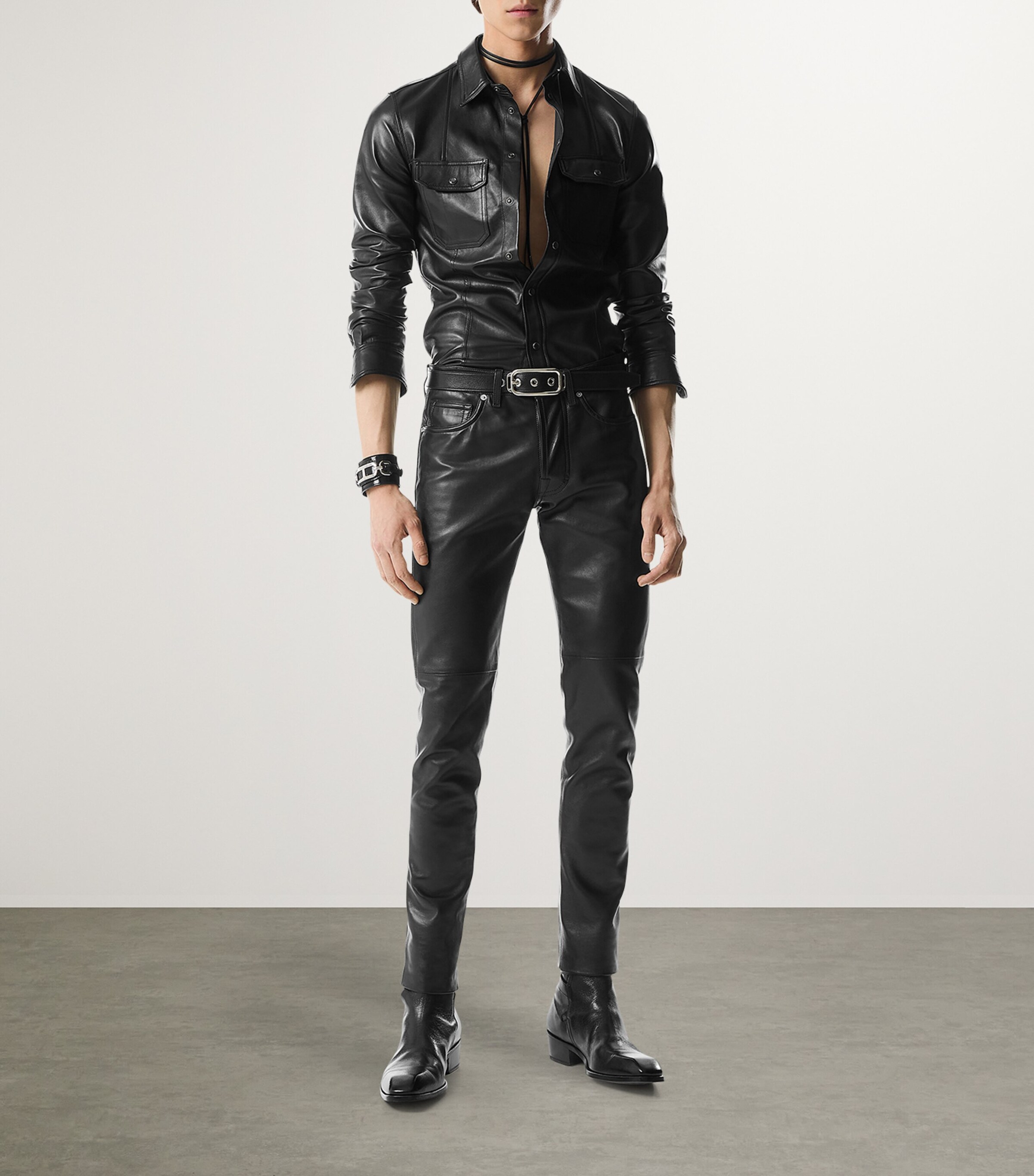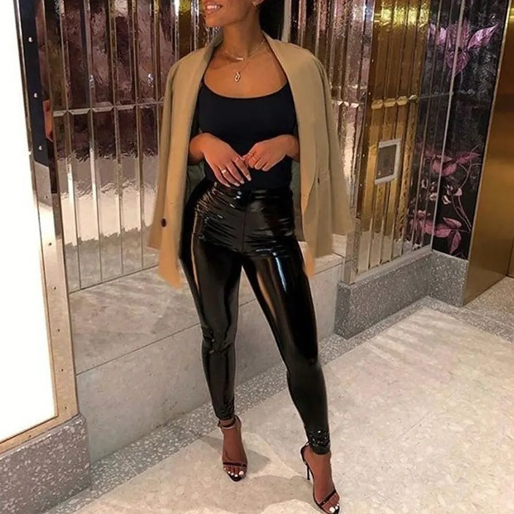 leather slim trousers