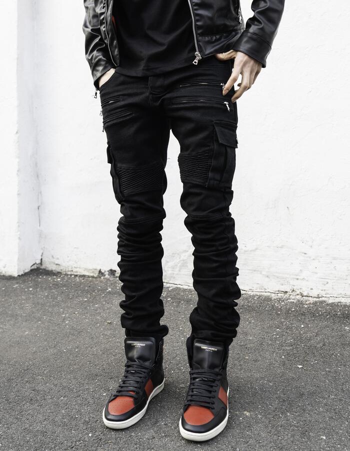 leather stacked jeans