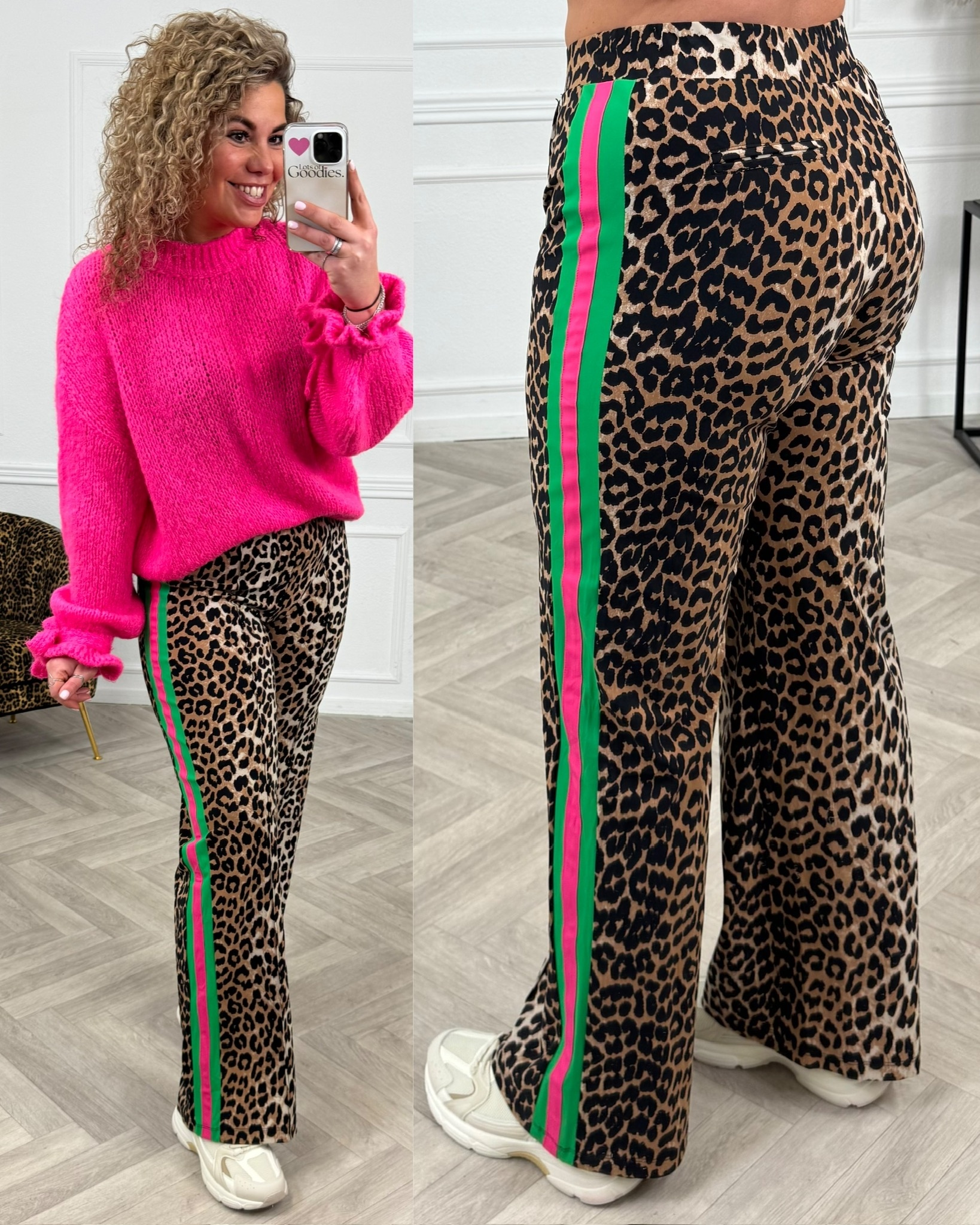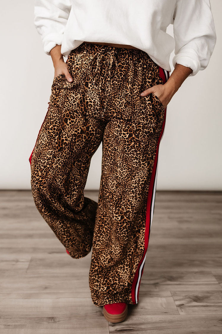 leopard pants with red stripe