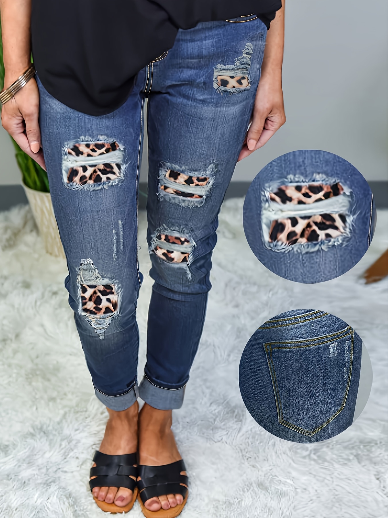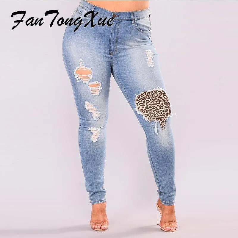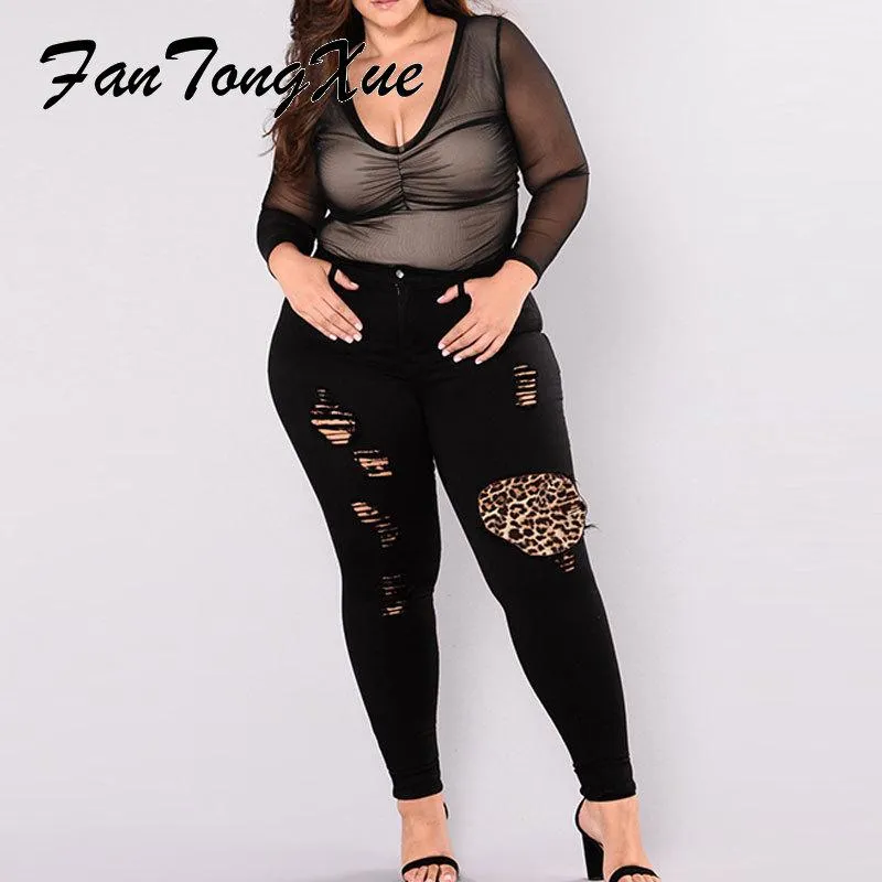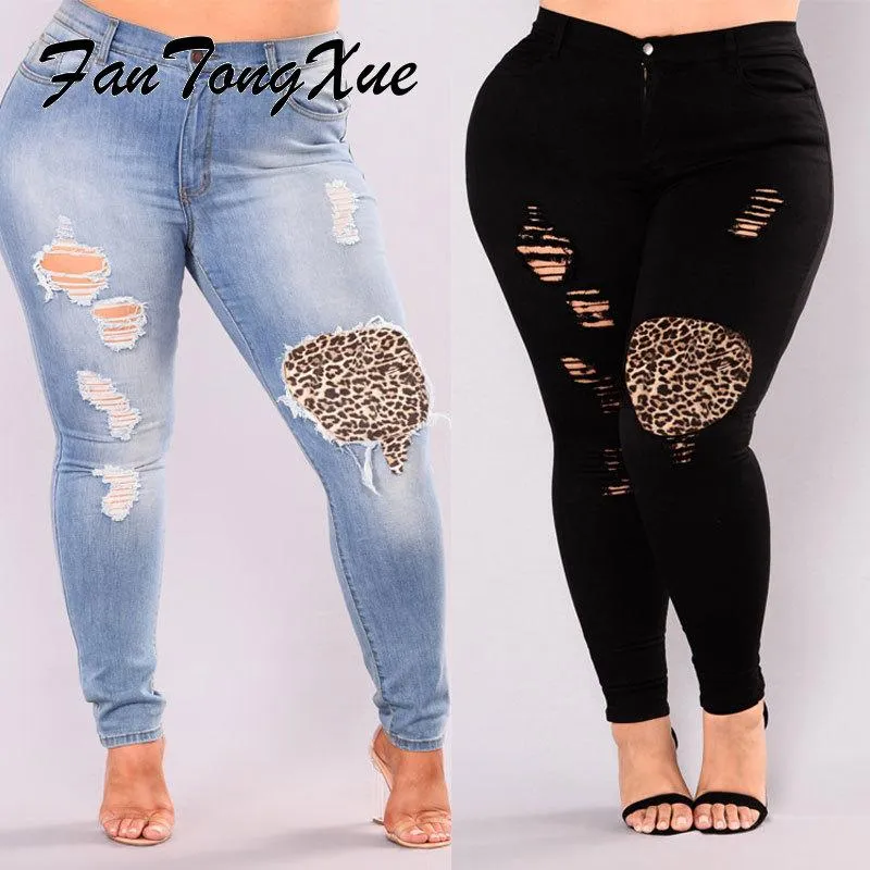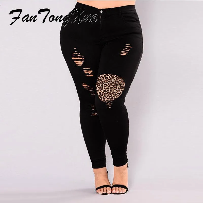 leopard patch jeans plus size