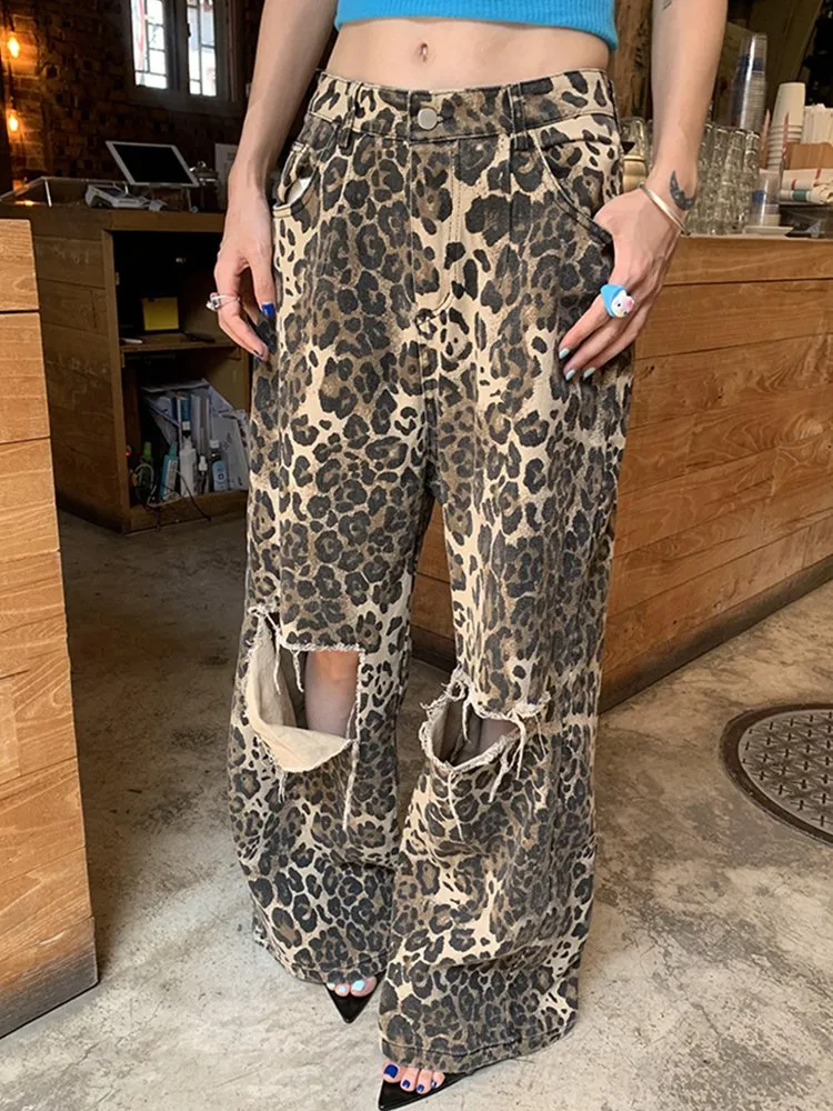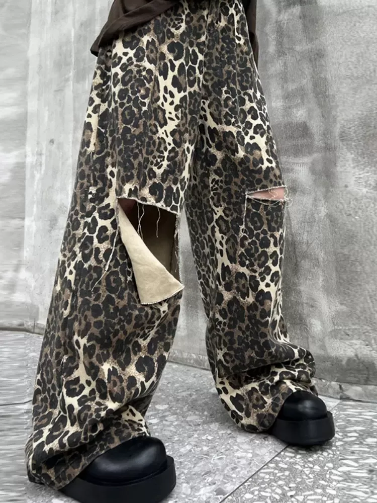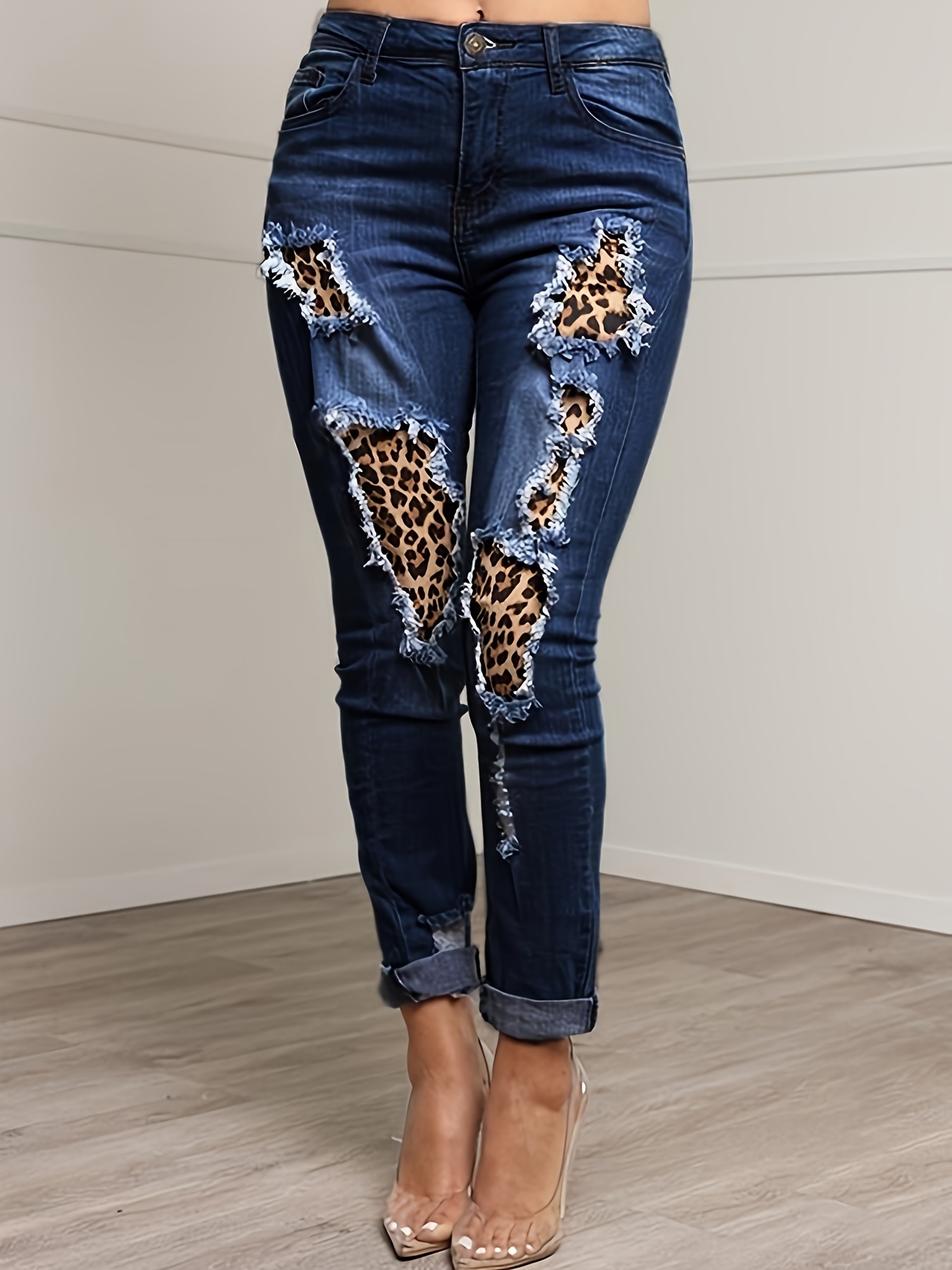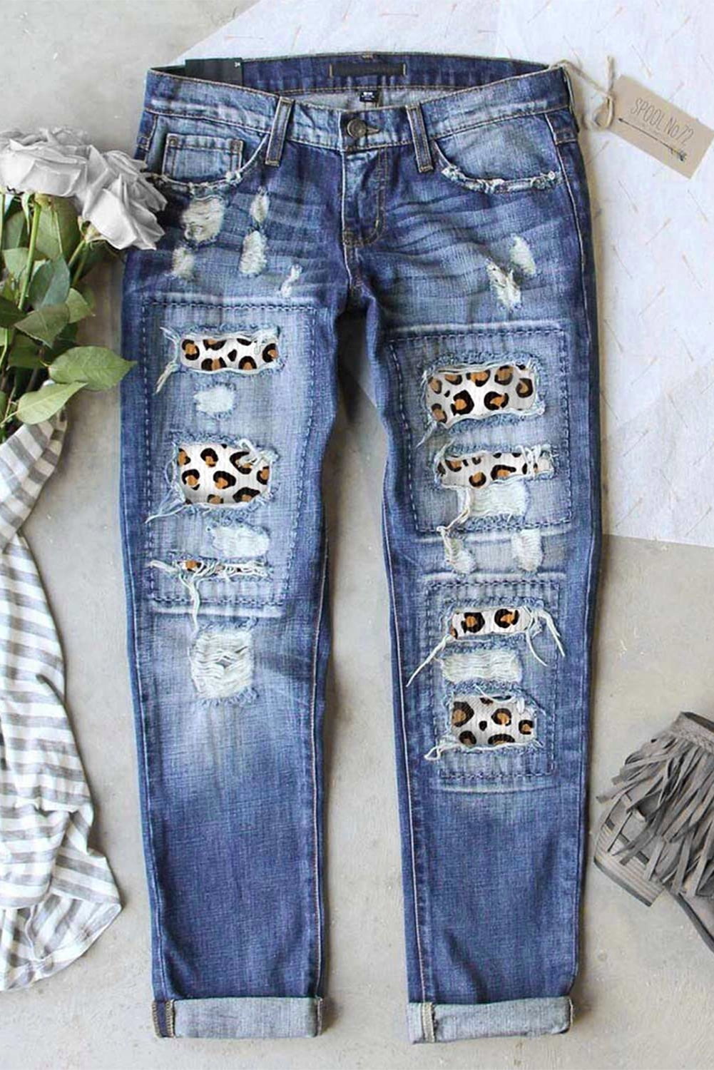 leopard print ripped jeans