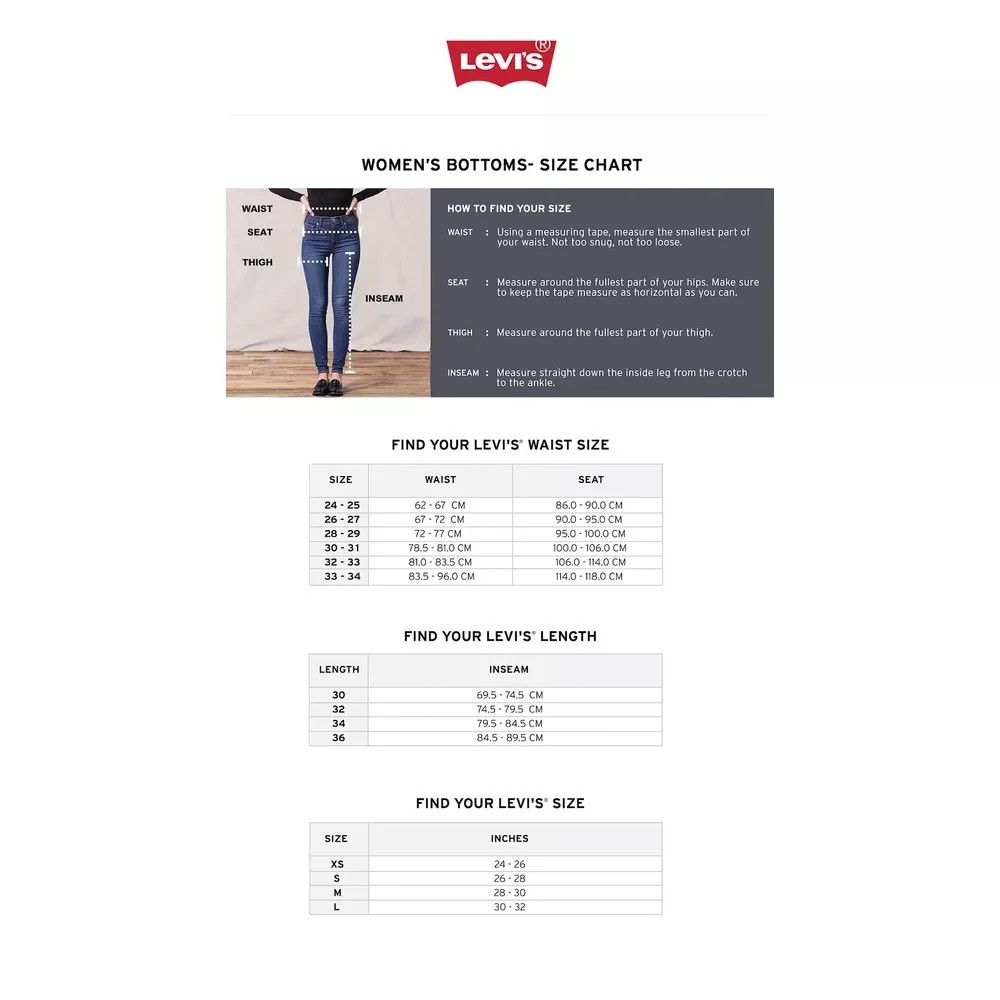 levi's 721 size chart