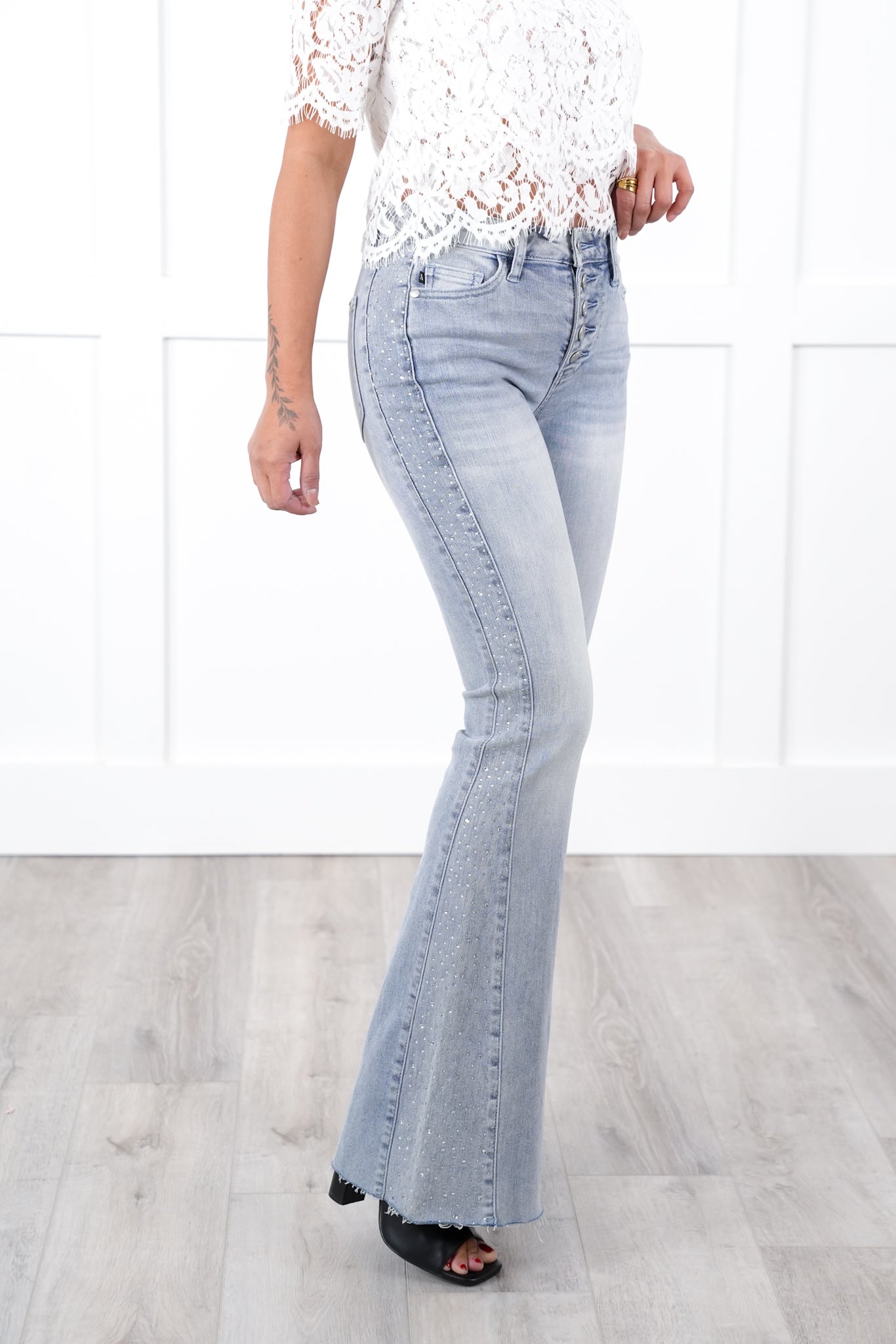 light blue flare jeans