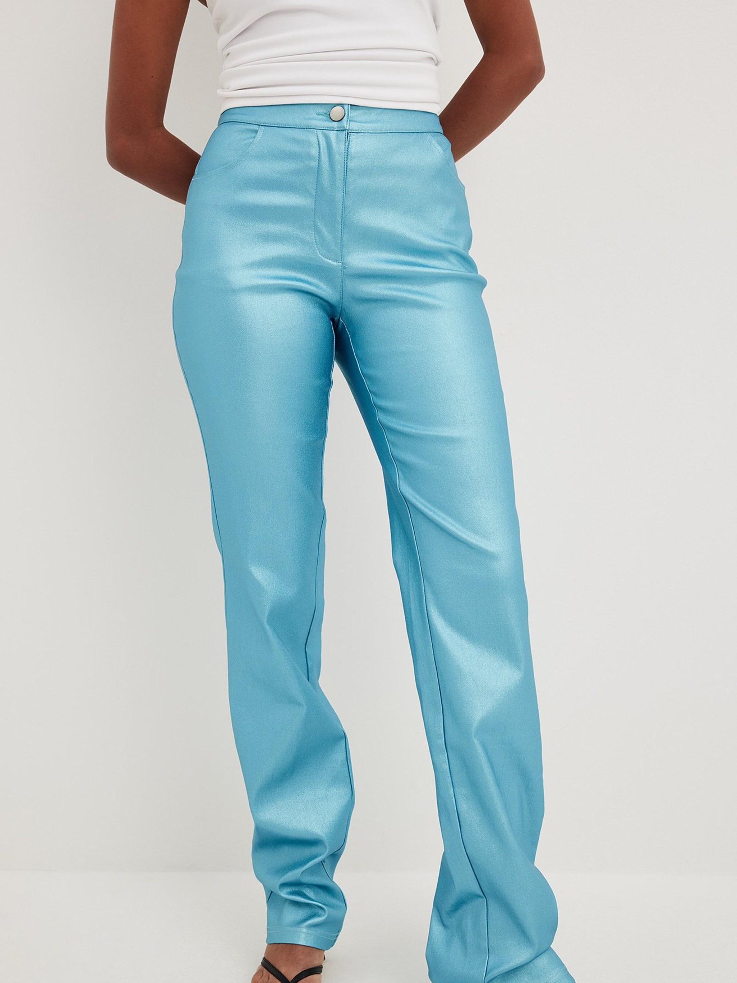 light blue leather pants