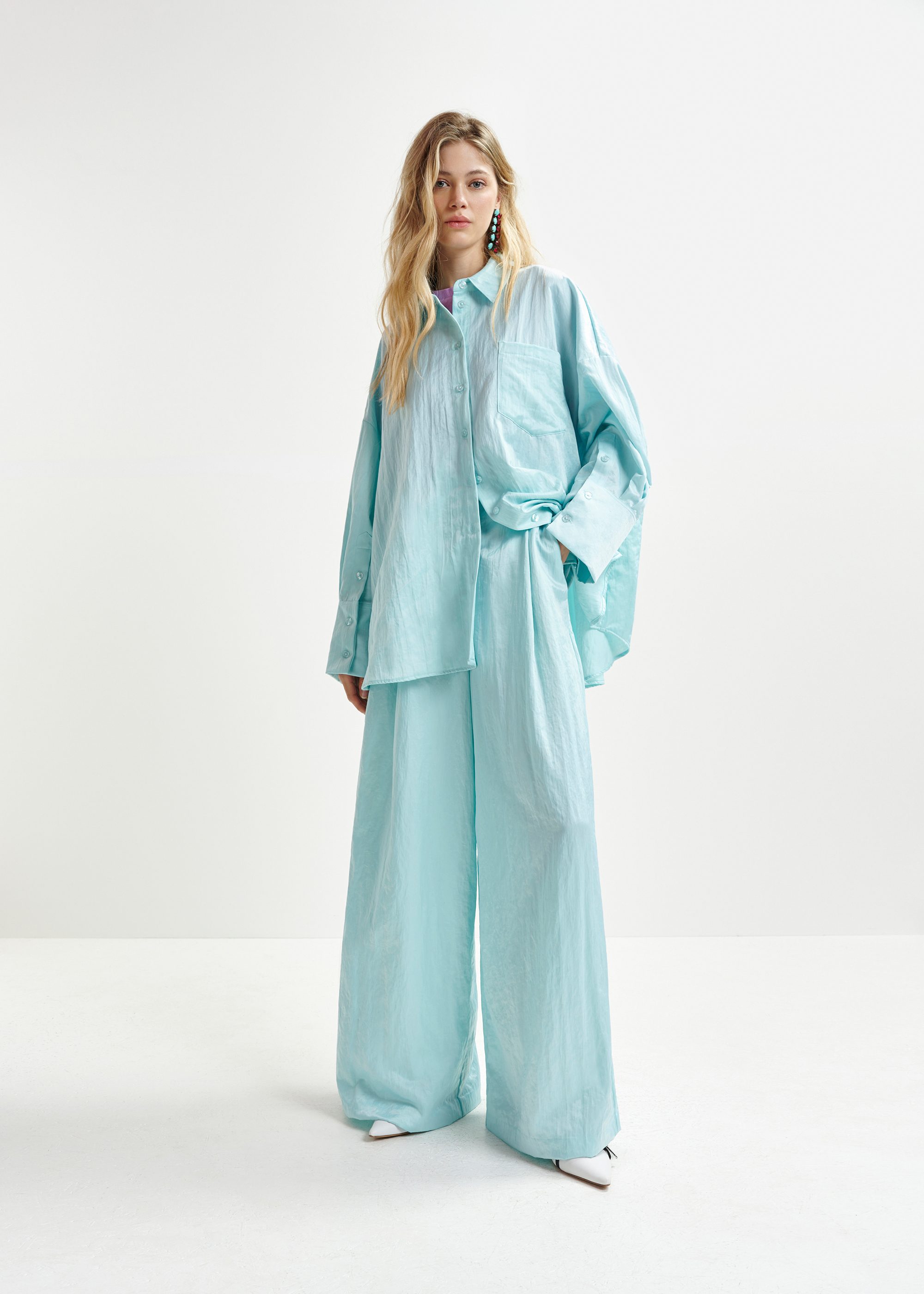 light blue wide leg pants