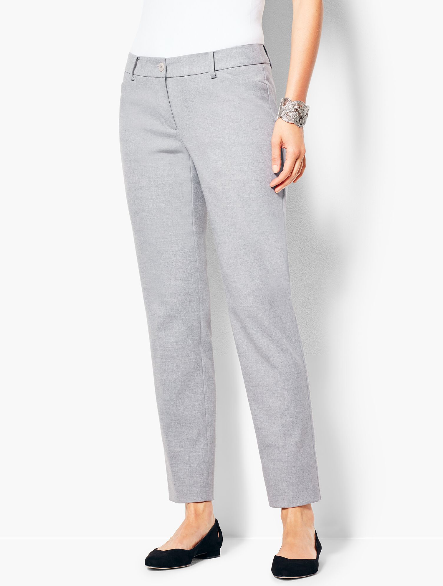 light gray satin ankle pants
