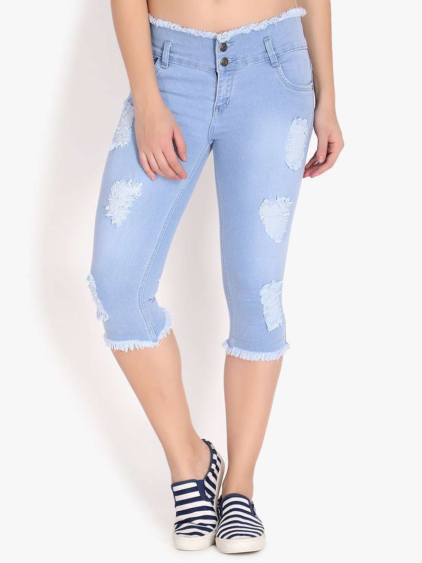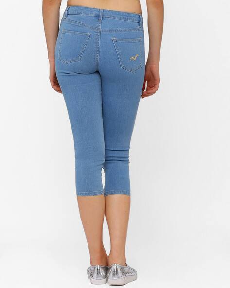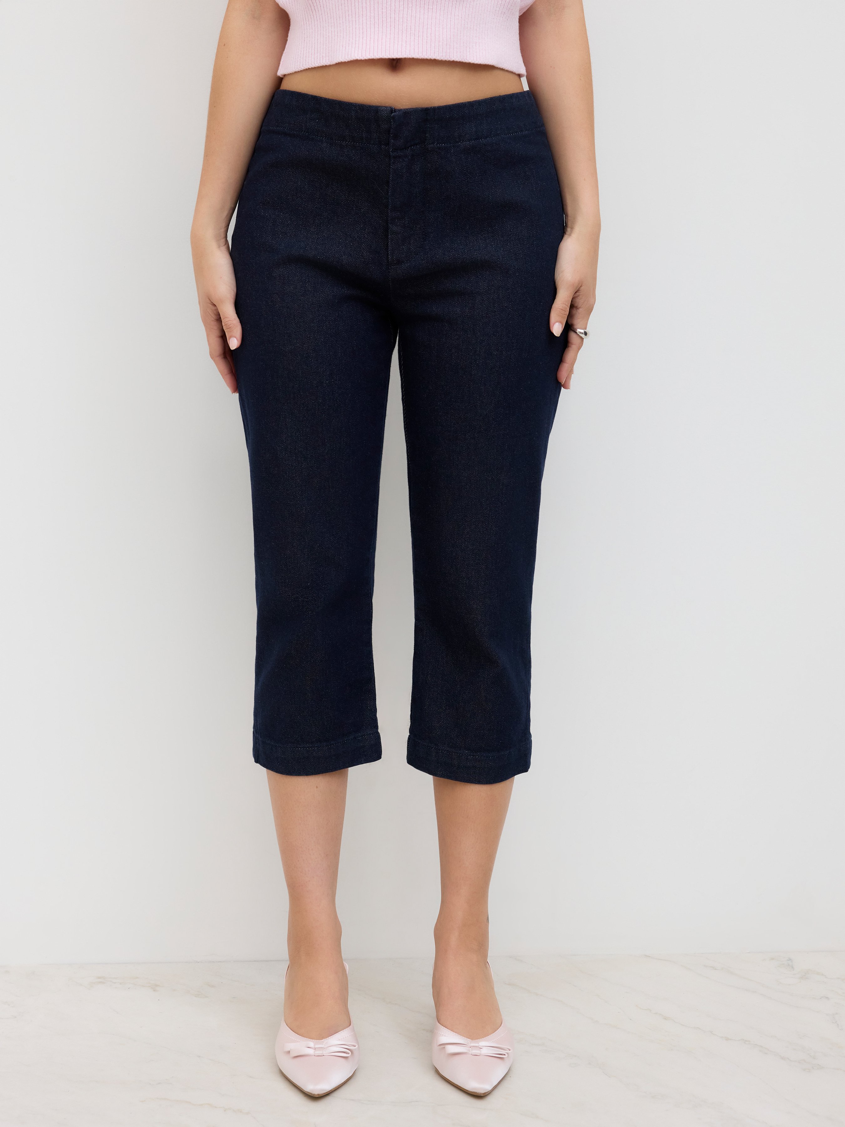 low rise denim capris