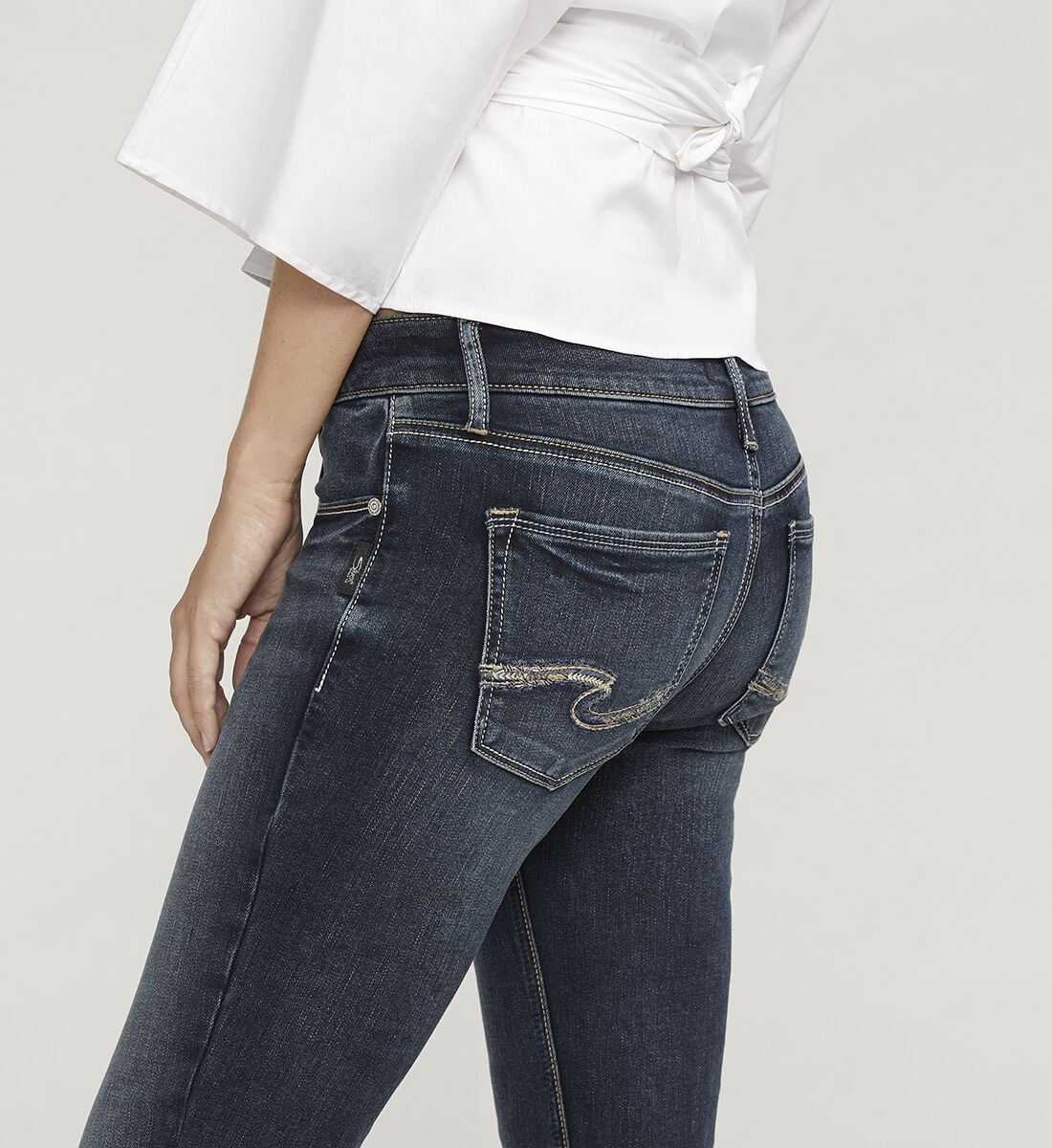 low rise silver jeans